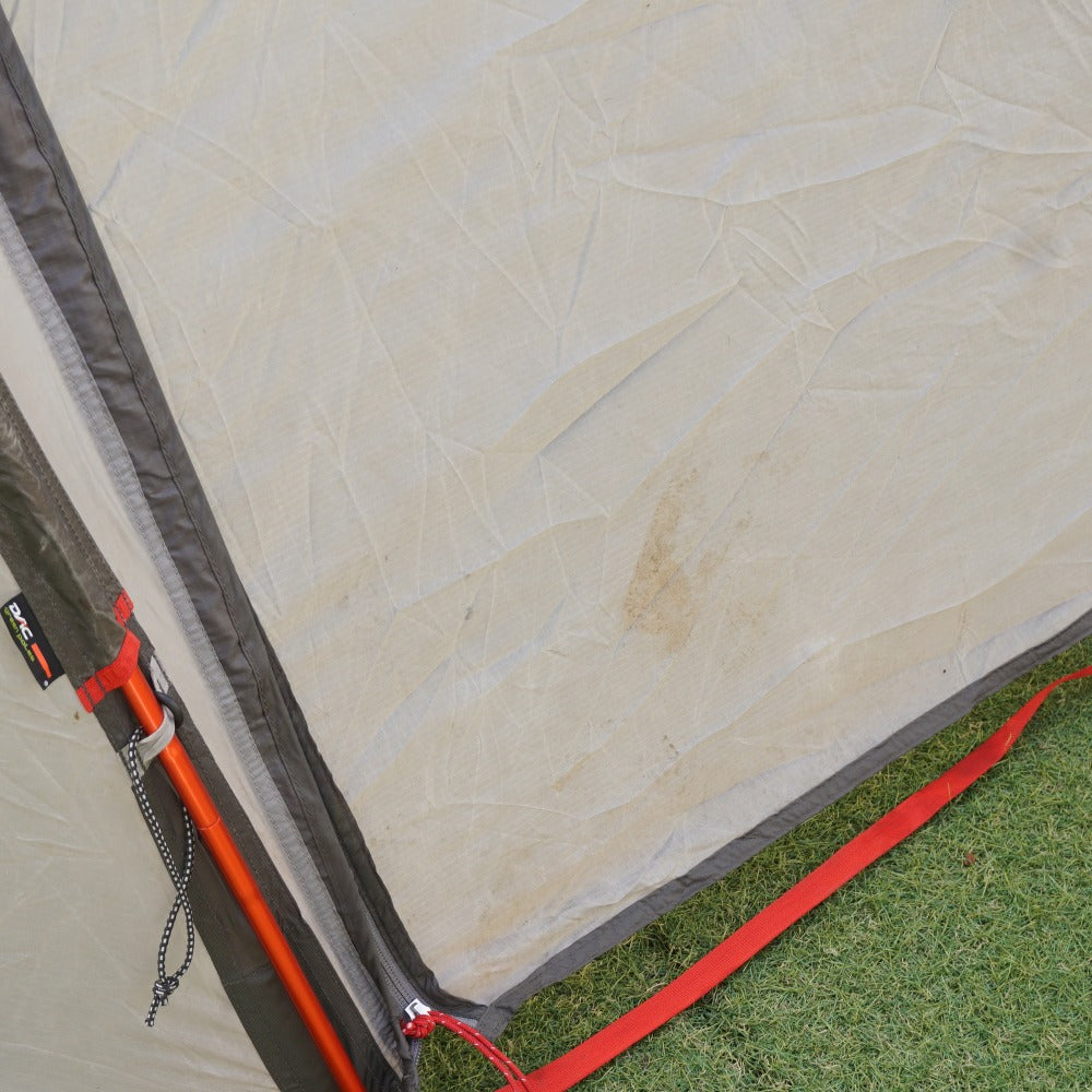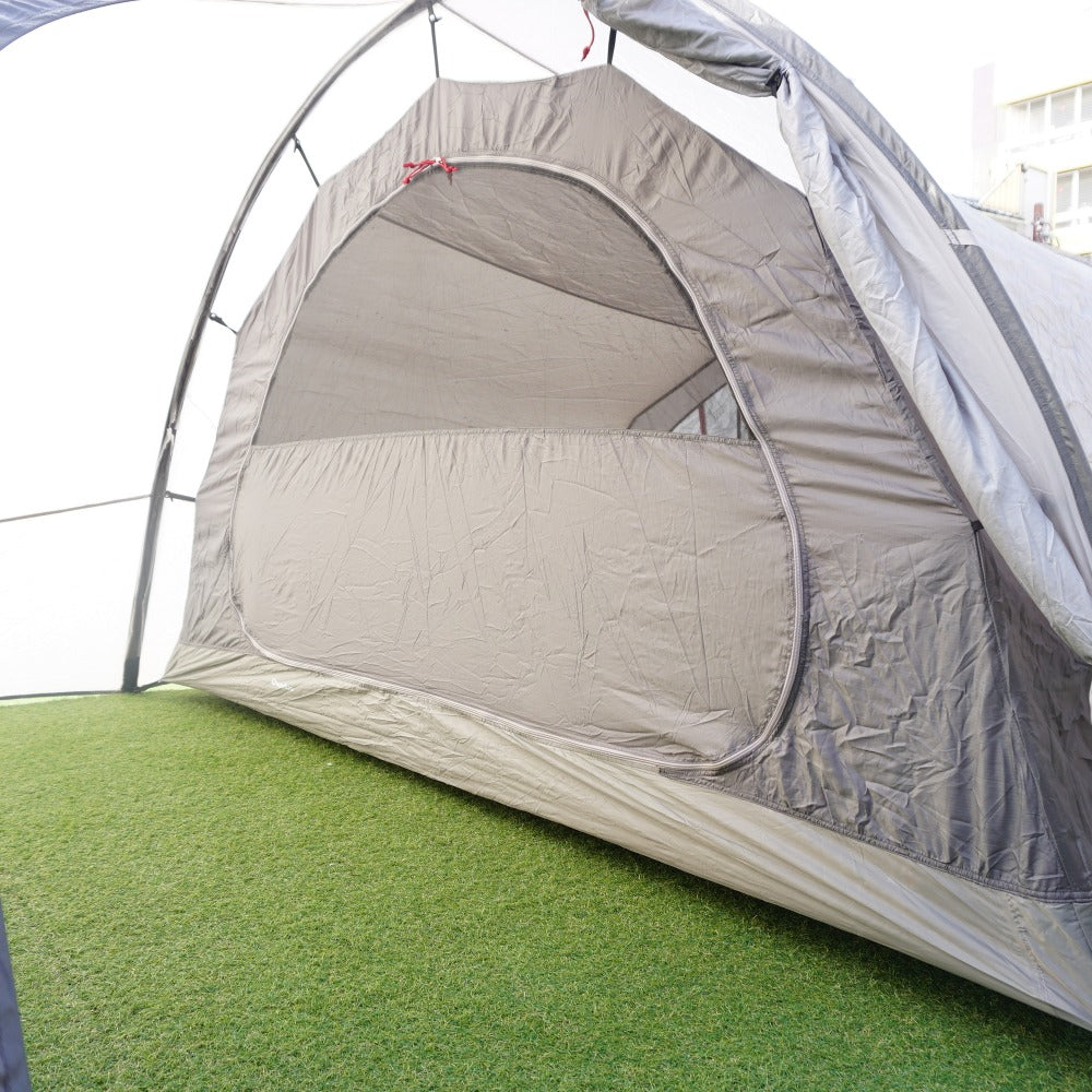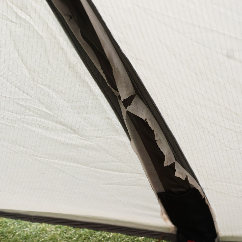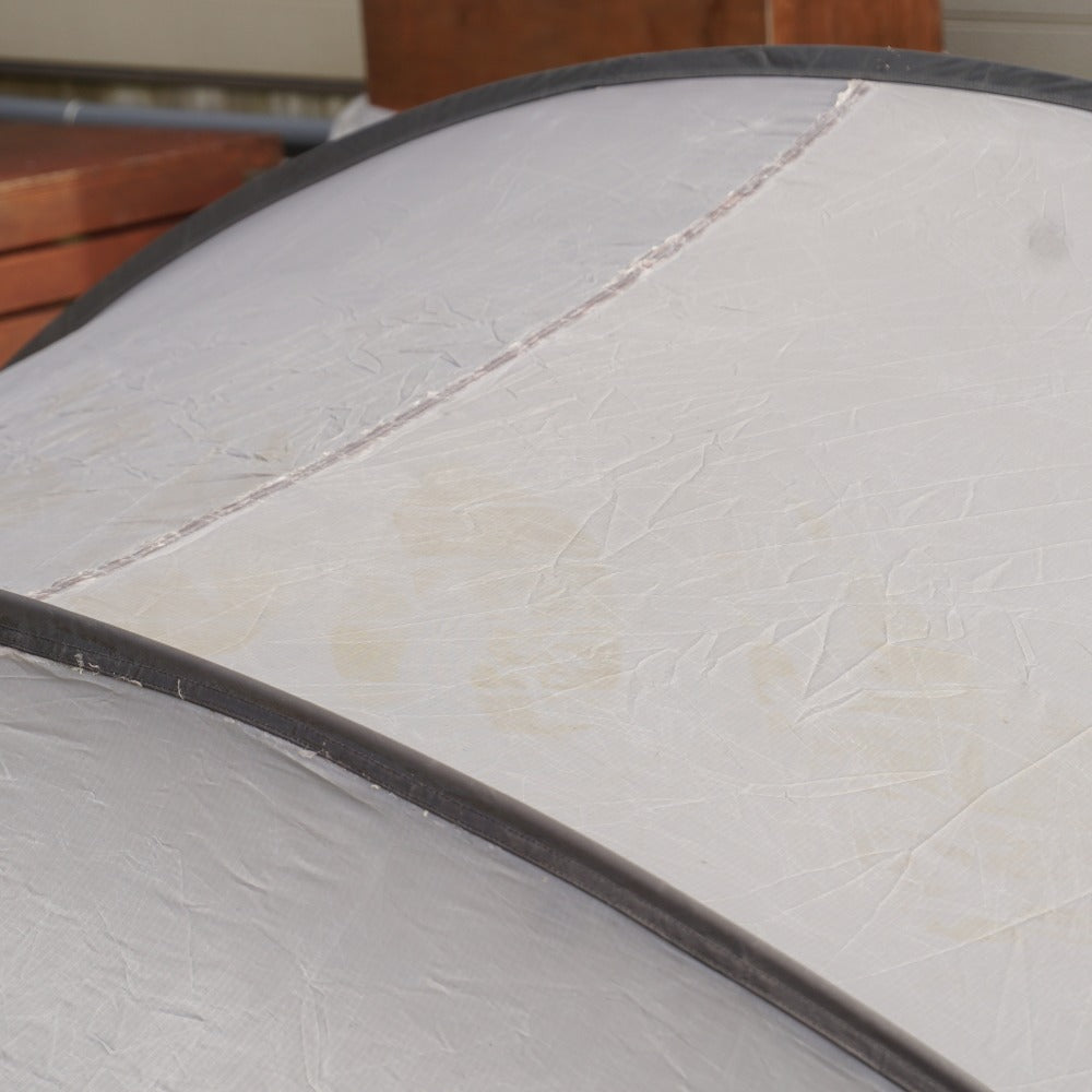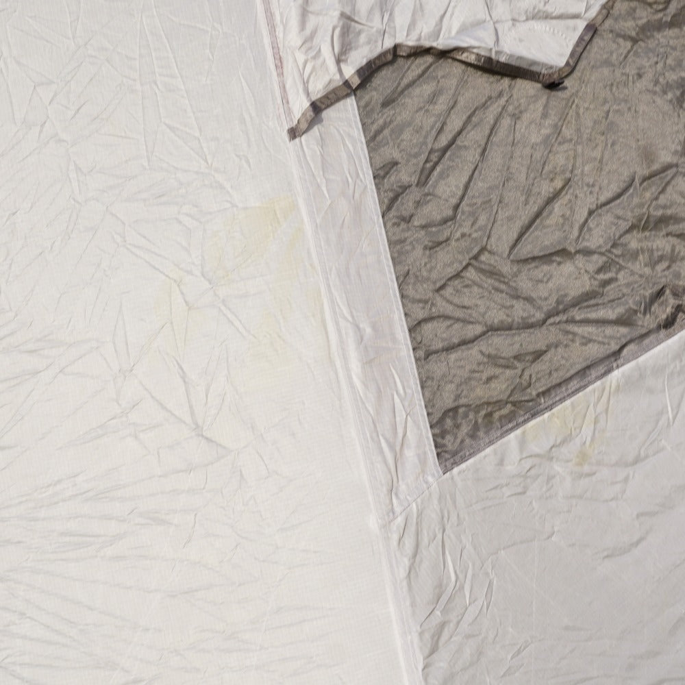 フライシートに、数か所薄い土汚れがあり、 生地の劣化によるベタツキとシームテープの剝がれはございますが、 インナーテント内側にはベタツキはございません。 また、フレームも変形などはございませんので、まだまだお使い頂けます。 |