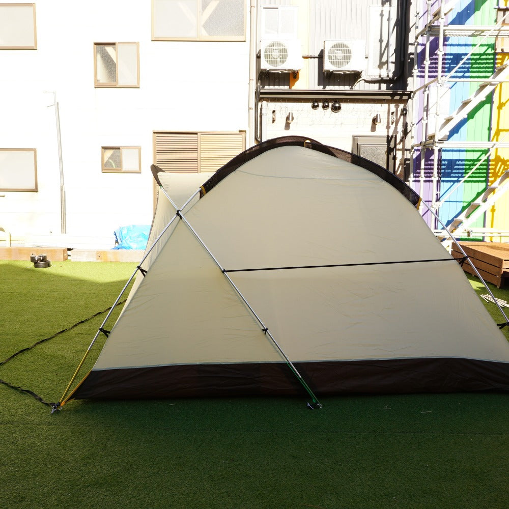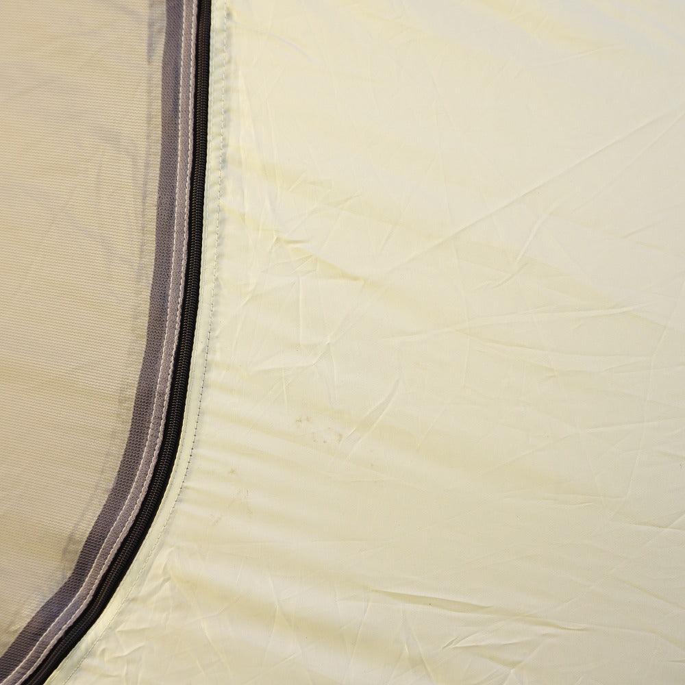 旧品番となりますが、インナーテントの表面に数ヵ所、数ミリ程度のわずかな汚れのみで、 その他目立った汚れやベタツキなどはなく、状態は良好です。 |