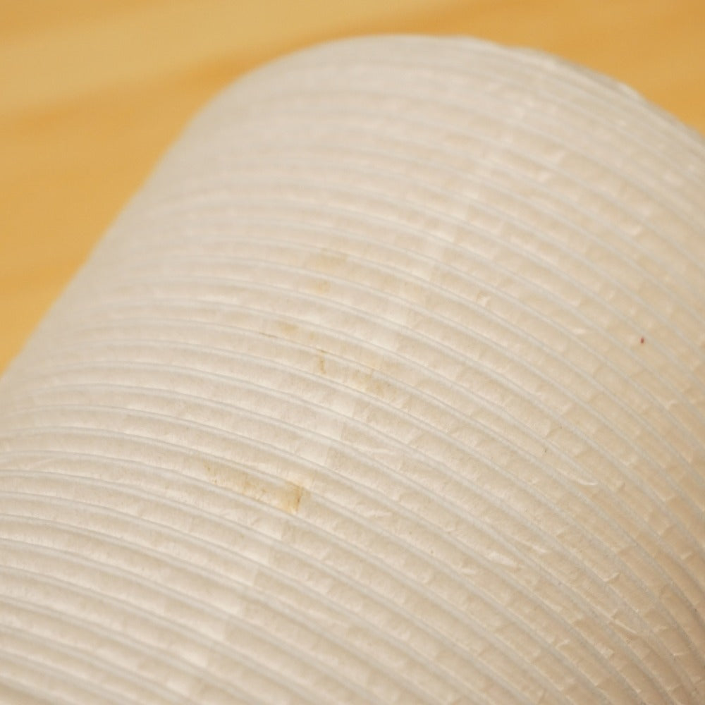 提灯シェードの上部(ほおずきとの接続部)が、使用により、一部生地が傷んでおります。 また、表面に一箇所薄い汚れが2~3cm程ございますが、 その他目立った汚れなどはなく、状態は良好です。 |