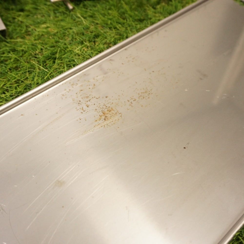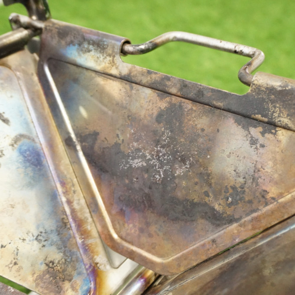 ベースプレートに一ヵ所、焼け跡のような、点々と薄い汚れがわずかにございます。 また、脚パーツの一部と本体に、使用による焦付きが多くみられますが 使用に支障となるような変形などはございません。 |