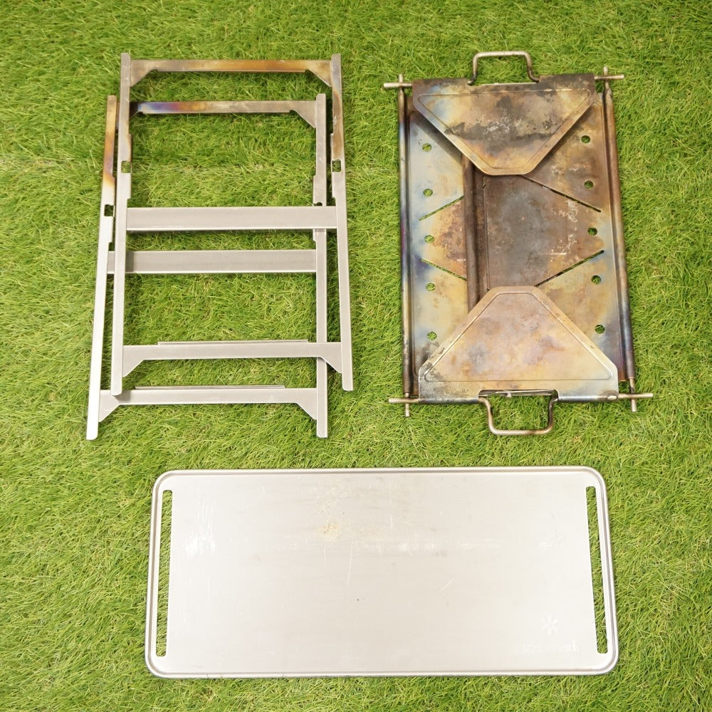 商品説明 | スノーピークの焚火台SR/ST-021です。 コンパクトに折り畳むことができる、小型の焚火台です。 持ち運びやすいサイズに折り畳めるため、ソロキャンプで活躍します。 また、焚火後の灰の始末も簡単にできる作りになっています。 |