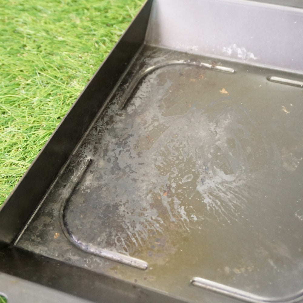 プレートの内側に、使用による焦付きや こべりついた油汚れなど使用感はございますが、 厚みのある鉄板を使用していますので、変形や歪みなどはございません。 |
