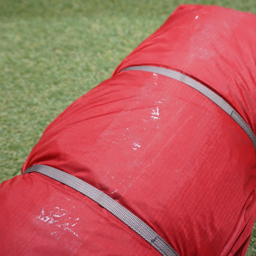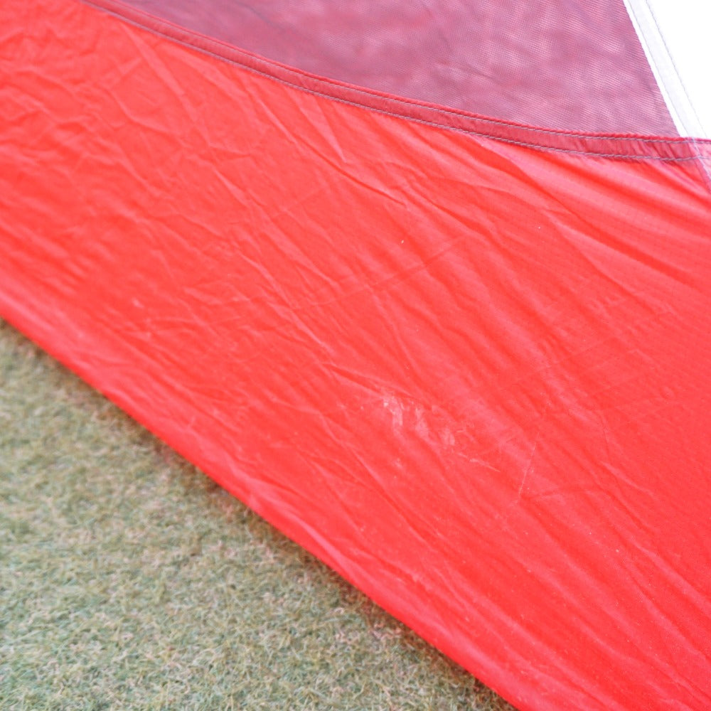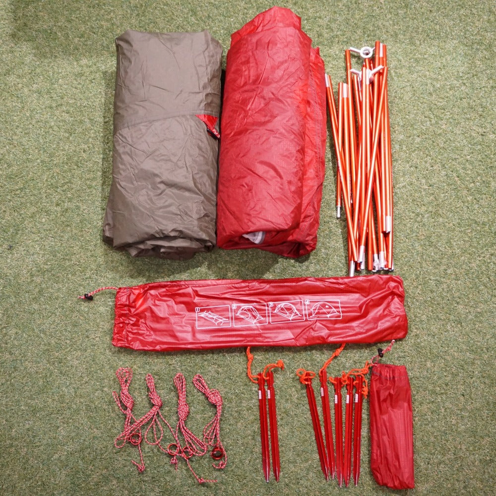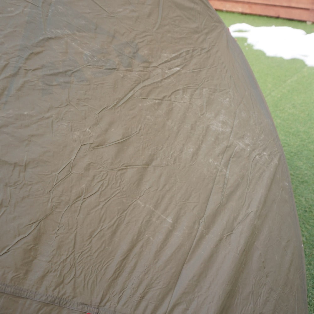 収納ケース裏面に、少しベタツキの伴った汚れがございます。 また、フライシートの表面とインナーテントのボトム部分に、 薄い土汚れが付着しておりますが、 その他目立った汚れなどはなく、状態は良好です。 |