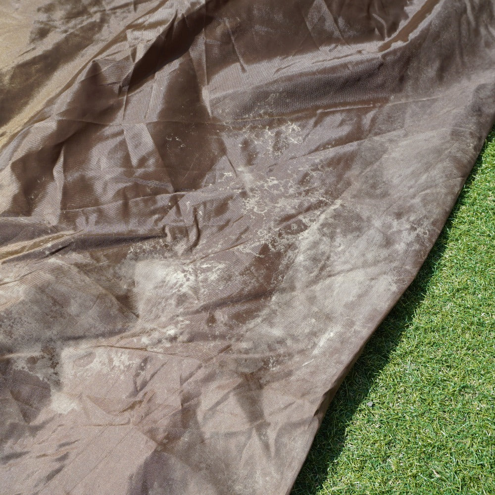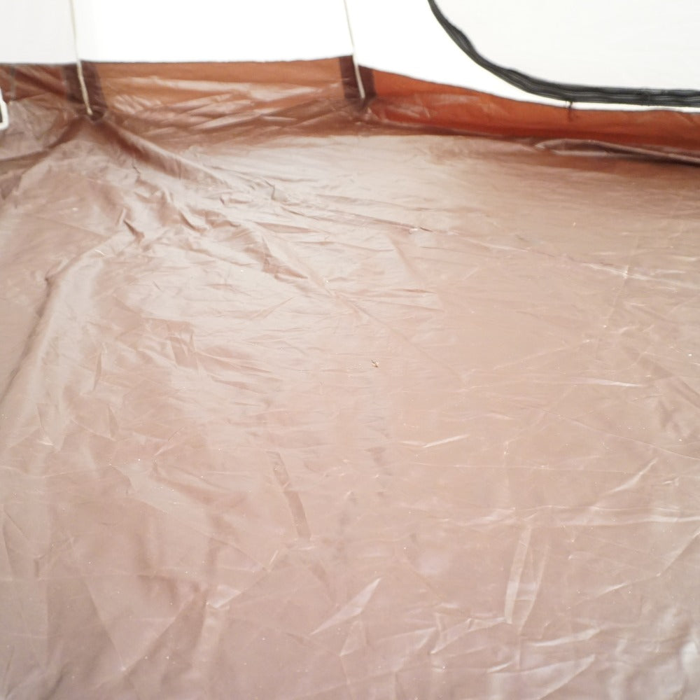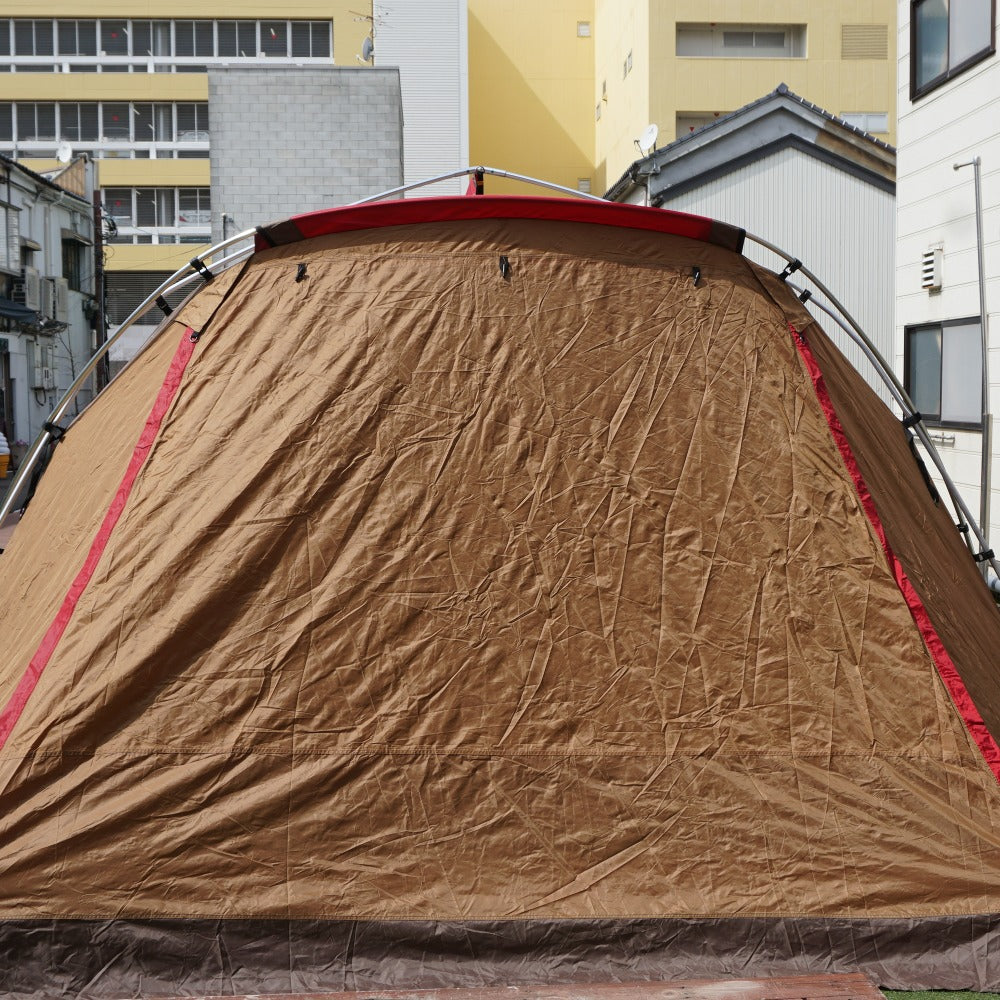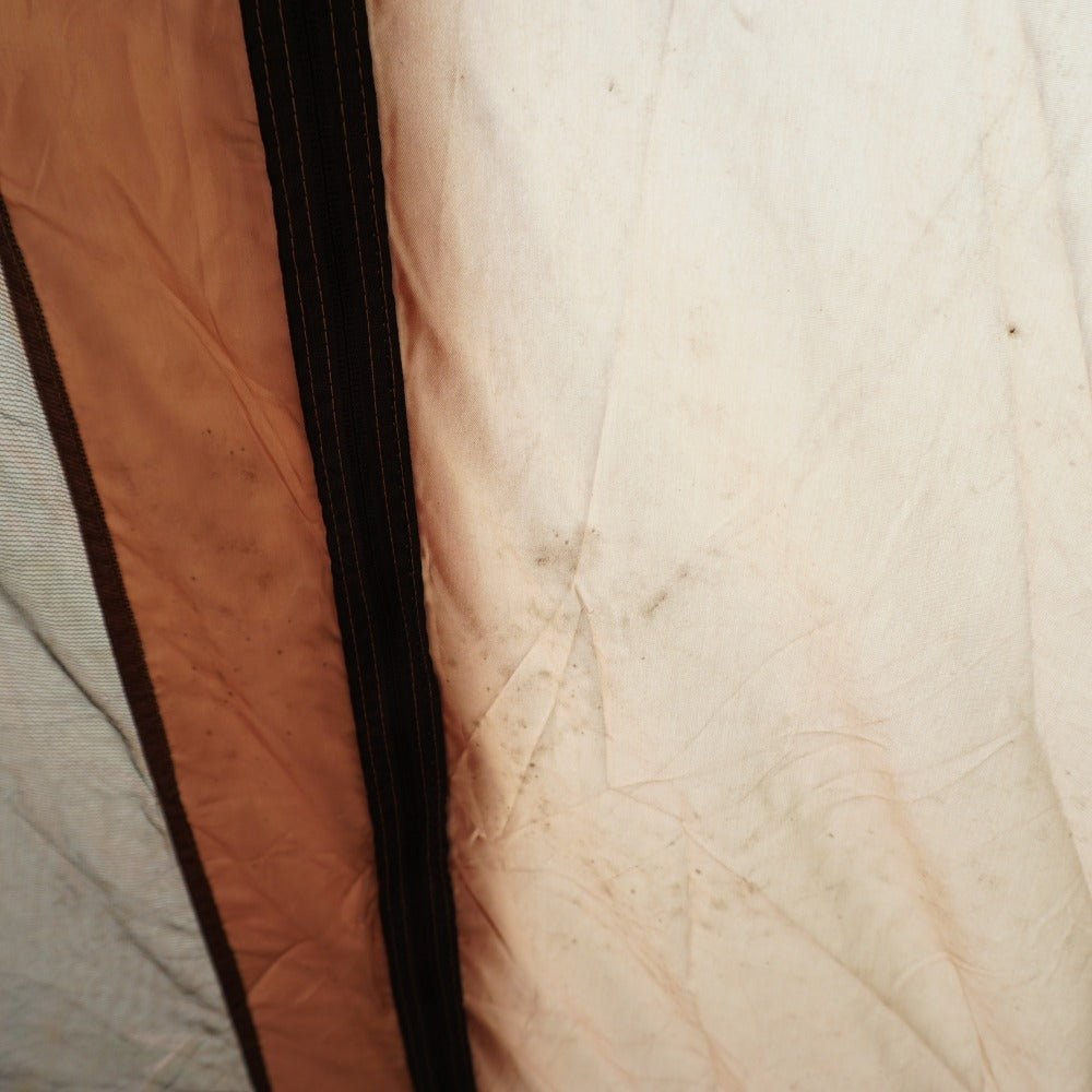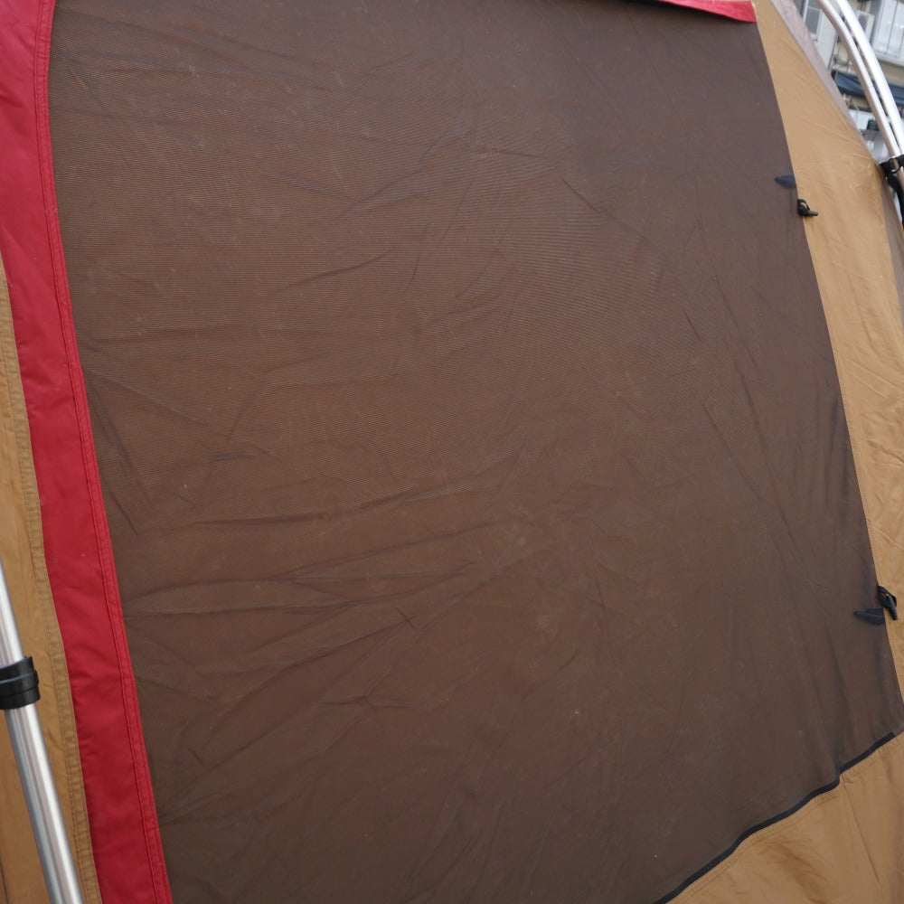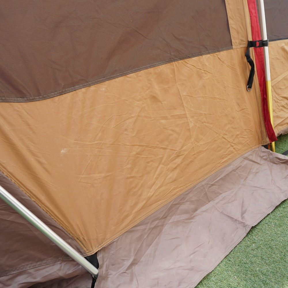 旧カラーの古いアイテムのため、生地の劣化による汚れやベタツキが、 フライシートの裏面とインナーテントのフロアに、わずかにございます。 また、インナーテントのボトムやフライシートのスカート部など、 土汚れが薄く付着しておりますが、 使用の際に支障となるようなフレームの変形などはございません。 |