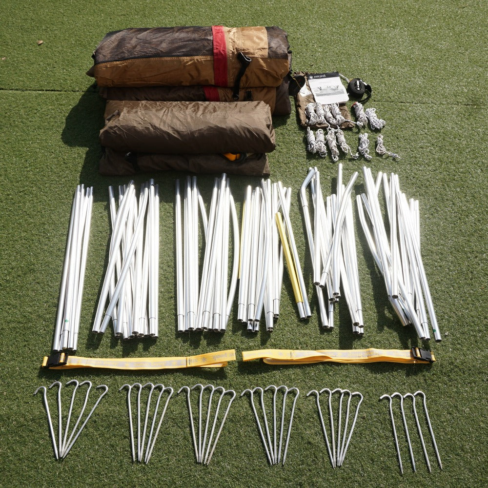 付属品 | 収納ケース フレームケース、シームグリップ剤、説明書、セーフティーベルト、ペグケース、自在付ロープ12本(2.5m×5/3.5m×6/1.5m×1)、コンプレッションベルト2本、ジュラルミンペグ29本 |