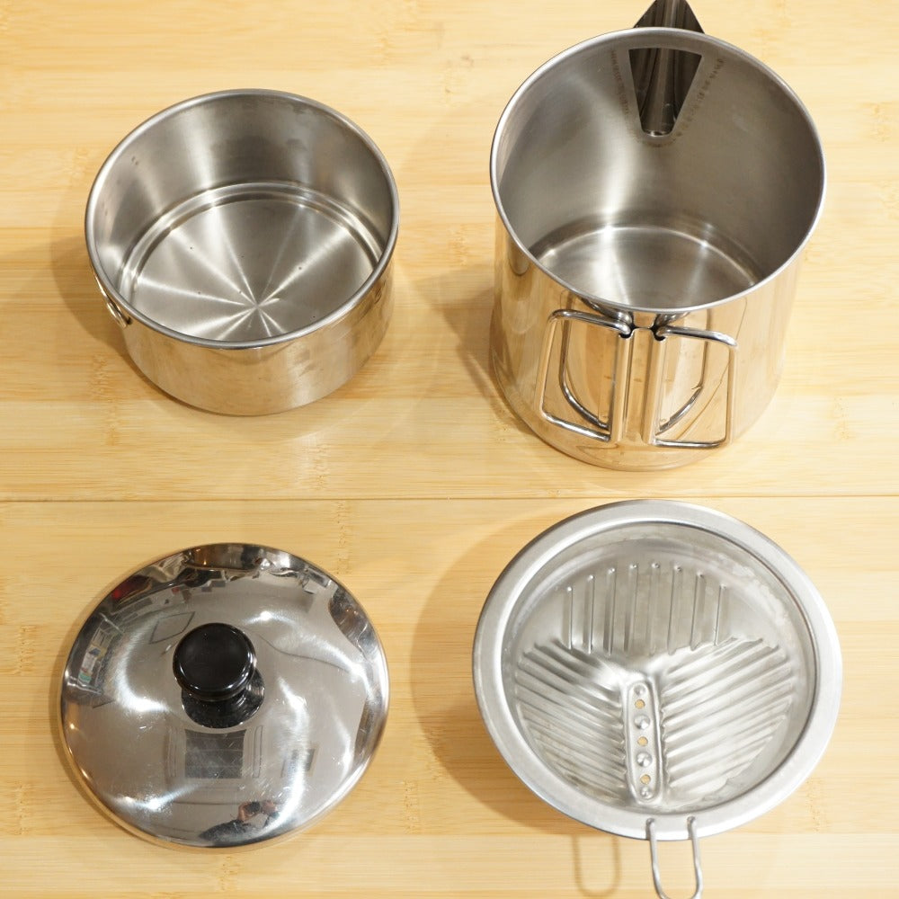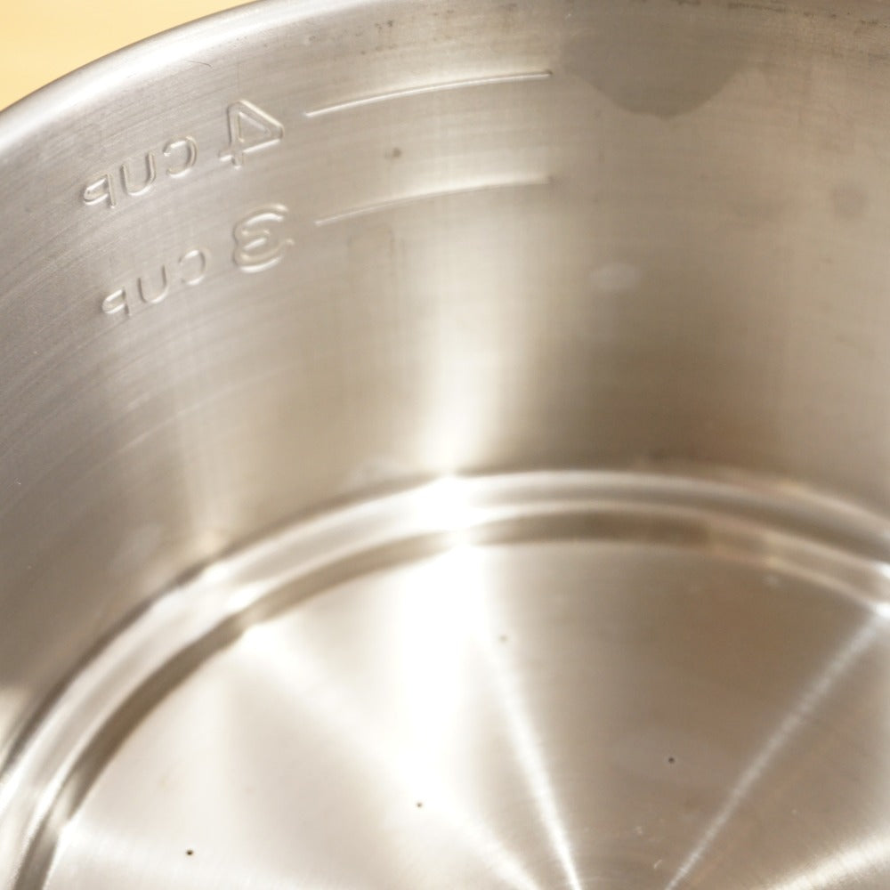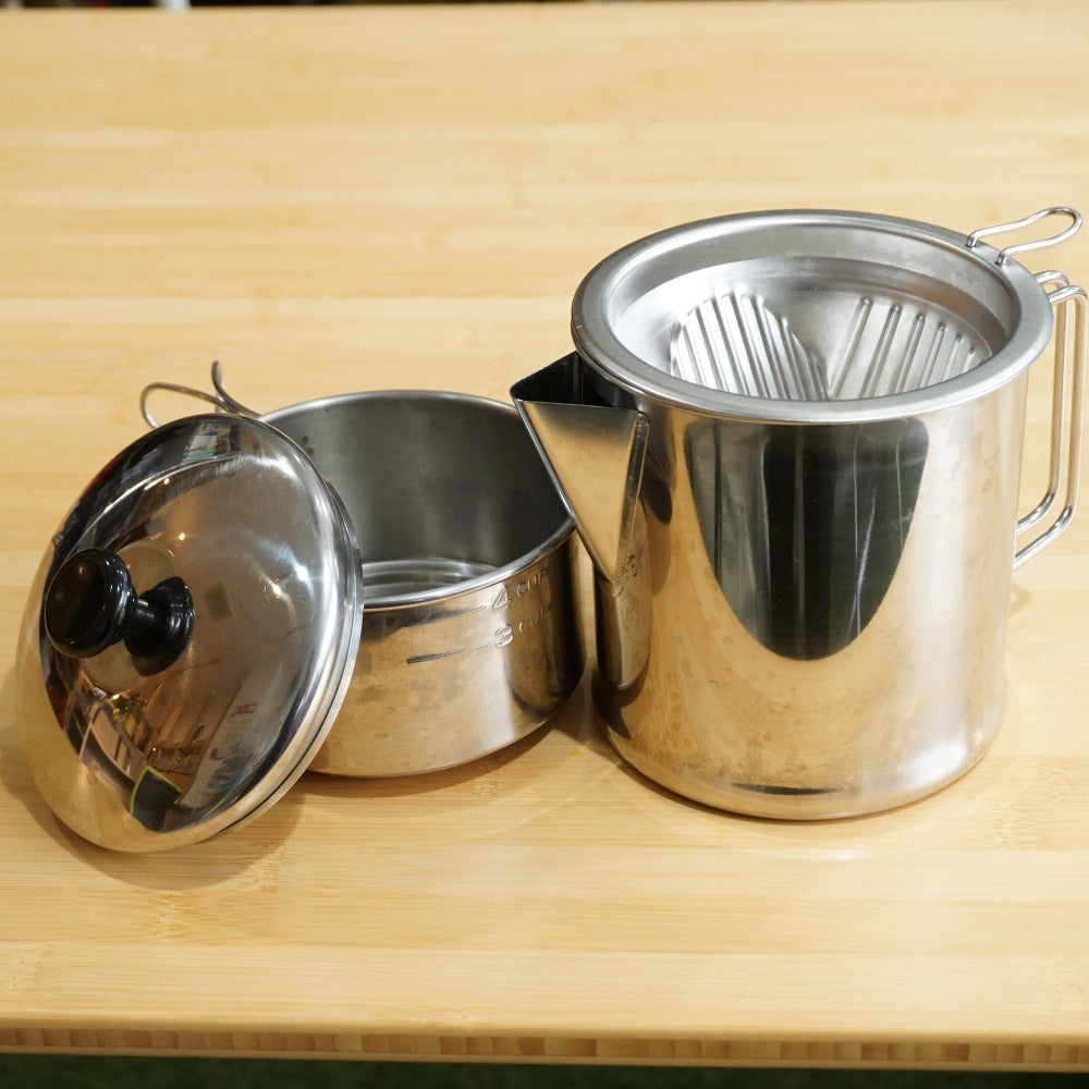 丈夫なステンレス製で、便利な目盛りも付いており、アウトドアでも活躍します。