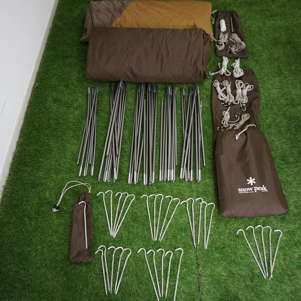 付属品 収納ケース ペグケース、シームシーリング剤、リペアパイプ、自在付ロープ10本(二又用6.0m×2/2.7m×2/2.0~2.2m×4/1.5m×2)、グランドシート収納ケース、アルミペグ31本、ペグケース(小)