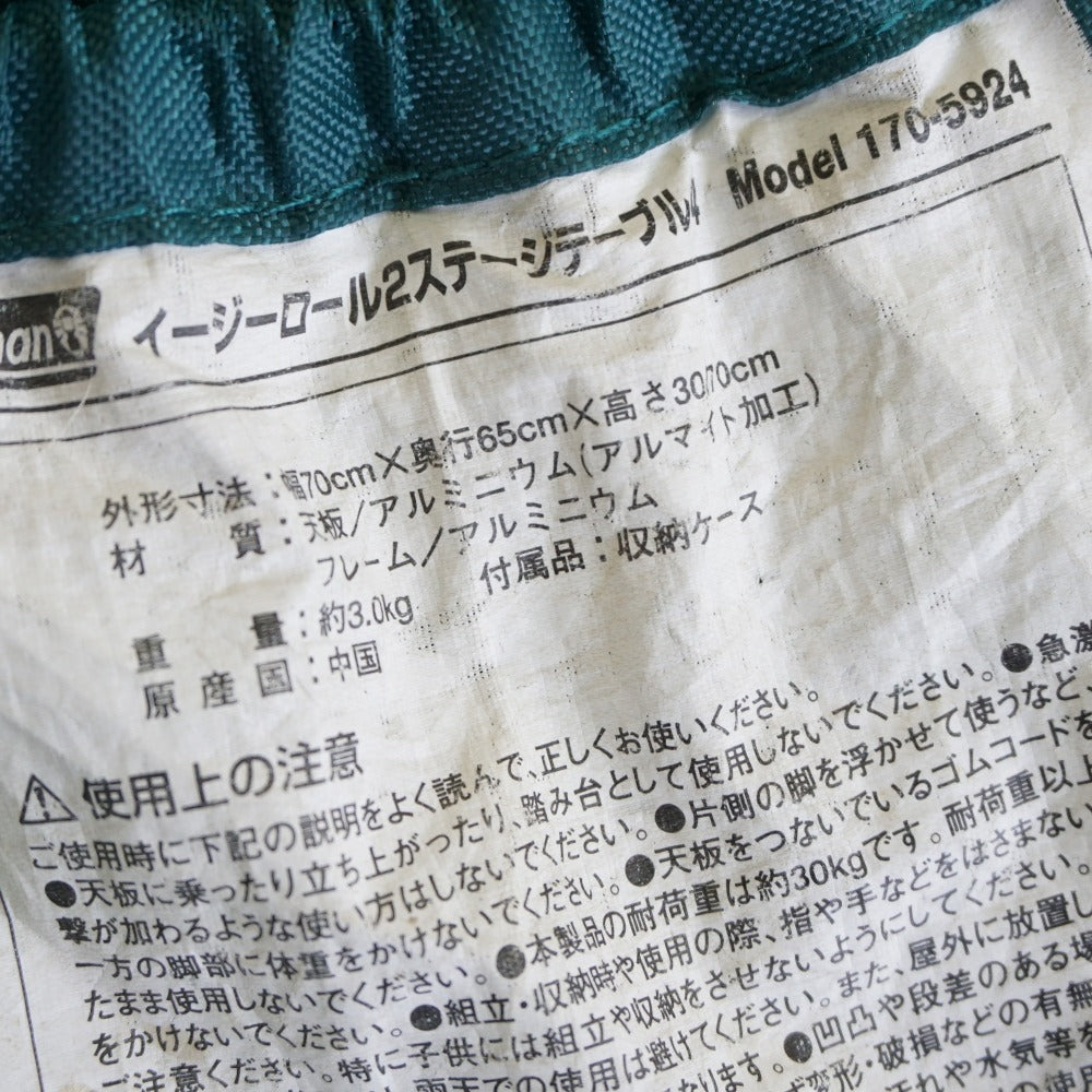 商品説明 | コールマンのイージーロール2ステージテーブル/170-5924 です。 高さが二段階に調整できるアルミ製のロールテーブルです。 ・サイズ:幅70cm×奥行65cm×高さ30/70cm ・重量:3㎏ |