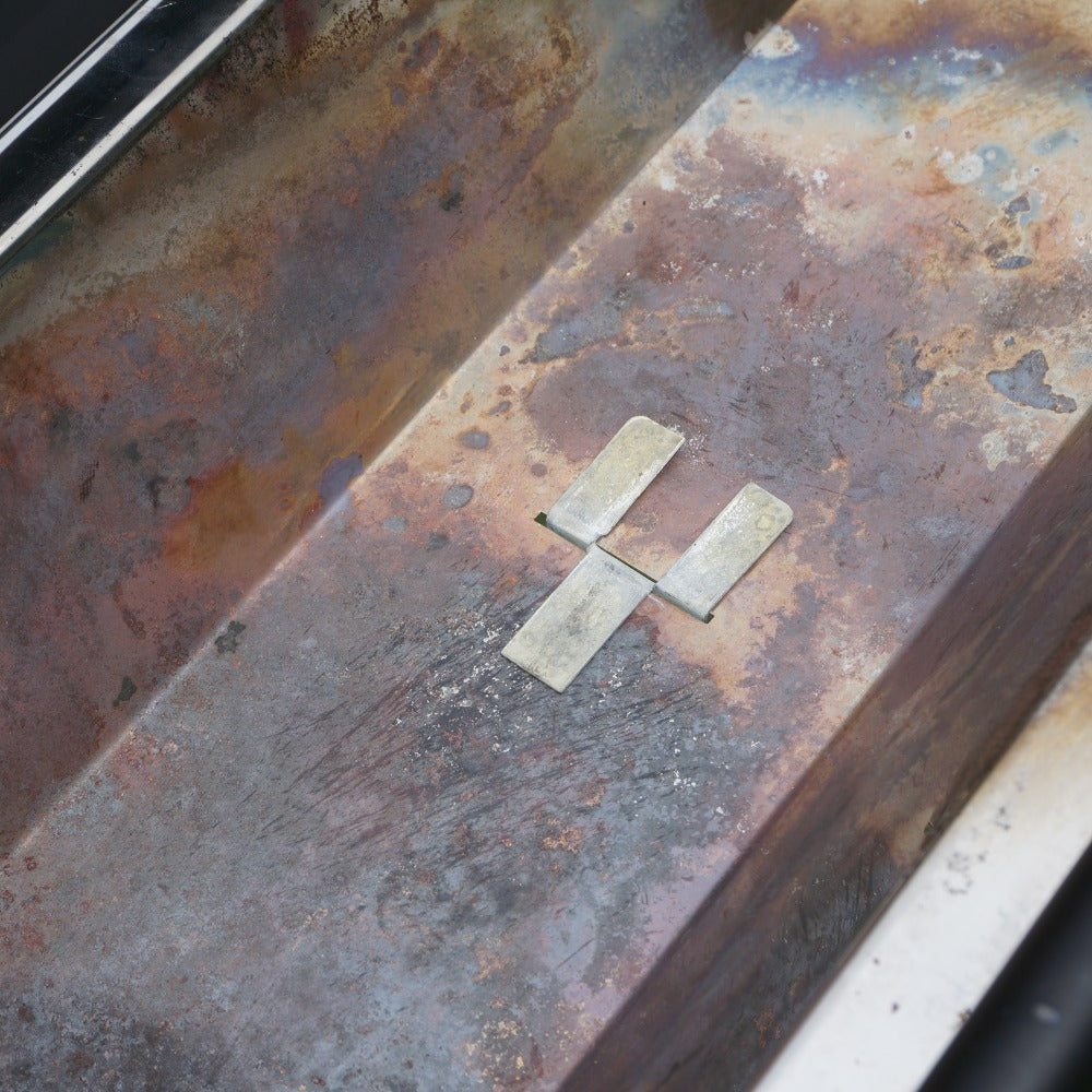 火床や焼き網は全体的に焦げ付きや錆があり、 本体(黒色フレーム部分)に、一か所、使用による焼け跡はございますが、 本体・脚に変形や油汚れによるベタツキなどはございません。 |