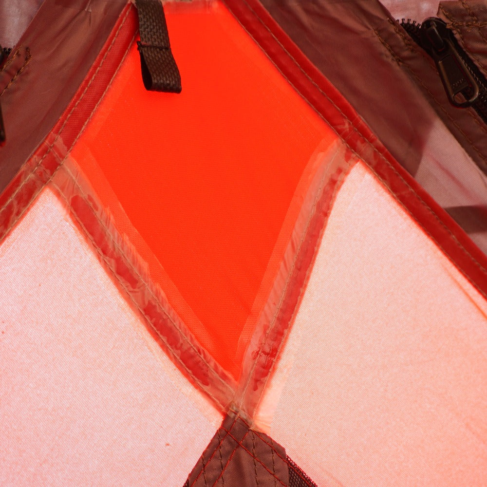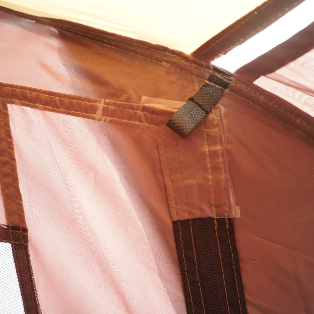 シェルター内側(裏面)の生地が、少し傷んでおり シームテープが浮き始めている箇所が見られますが、 ひどいベタツキはございません。 スカート部分に土汚れやキズが見られますが、その他目立った汚れなどはございません。 当店にて、組み立て確認済みです。 |