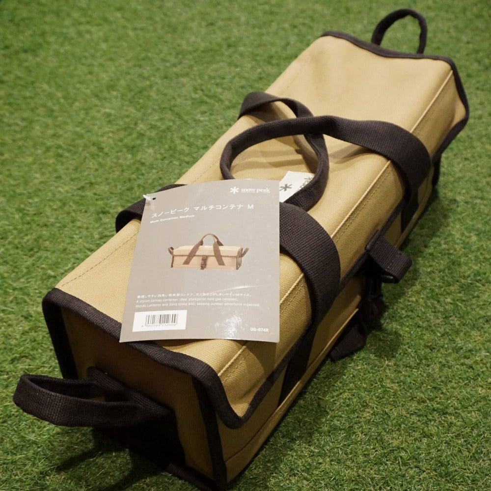 商品説明 | スノーピークのマルチコンテナM/UG-074Rです。 小物からペグまで保管・携行に最適なバッグです。 6号帆布で頑丈なバッグですので、ソリッドステークペグなど重たいペグの収納・運搬も問題ありません。 ・サイズ:W440×H150×D160mm |
