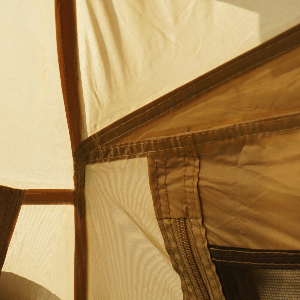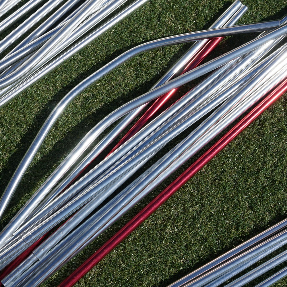 ミドルポール(赤色)が一か所、変形しておりますが、 設営は行うことはできます(画像2~3枚目参照)。 また、インナーテントフロア部分に、わずかにベタツキがあり、 前室のキャノピー部分に、2か所、数ミリほどの焚火穴がございますが、 その他目立った汚れなどや、シームテープの剝がれなどはございません。 当店にて、組み立て確認済みです。 |