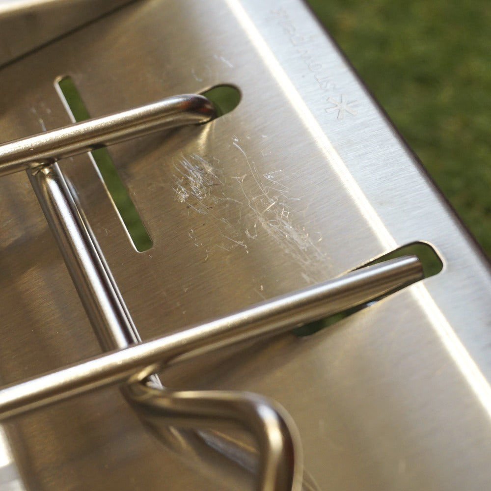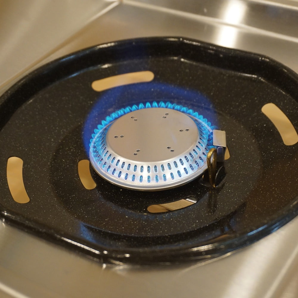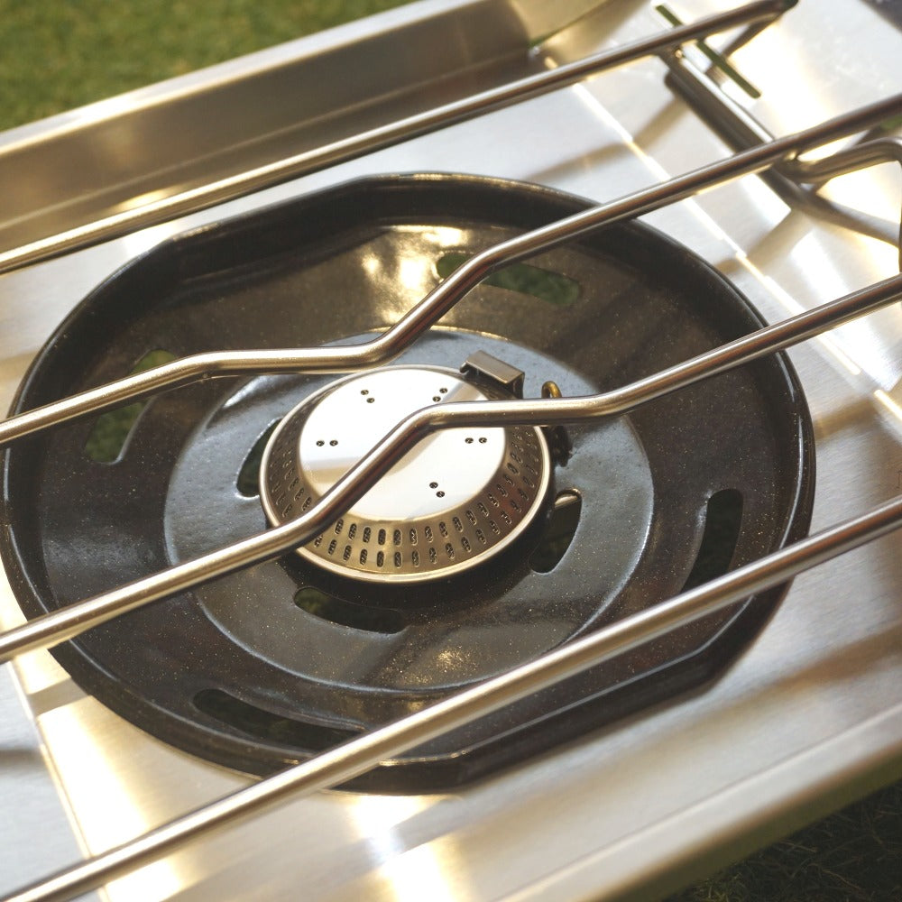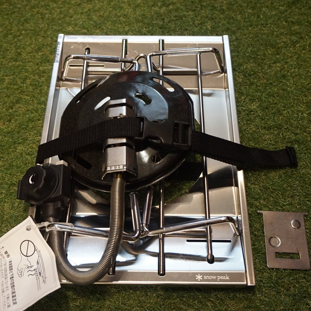 商品説明 | スノーピークのシングルコンロ フラットバーナー/GS-450です。 こちらは現行品番(GS-450R)より一つ前の型番で、 汁受け(風防)部分がステンレス製ではなく、鉄の表面にほうろう処理されており、 色合いも異なります。 テーブルに置いても、アイアングリルテーブルIGTにセットしてもお使い頂けます。 バーナー上面に凹凸が少ないので、IGTにセットした時にフラットになり、テーブルの上を有効に使えます。 シンプルですが、出力:3,000kcal/hと強力です |