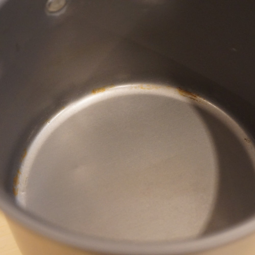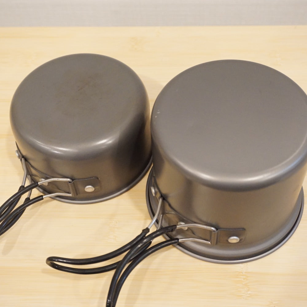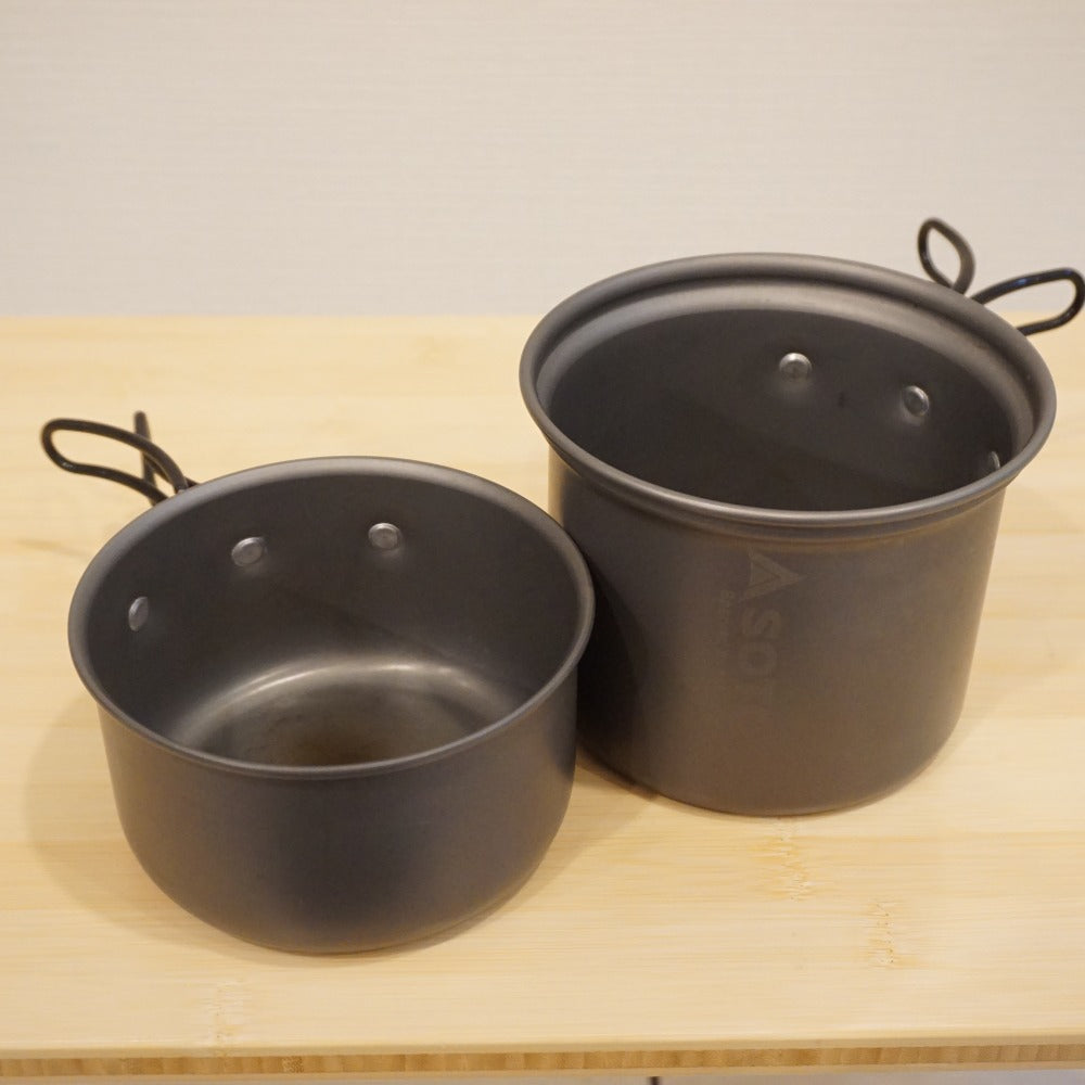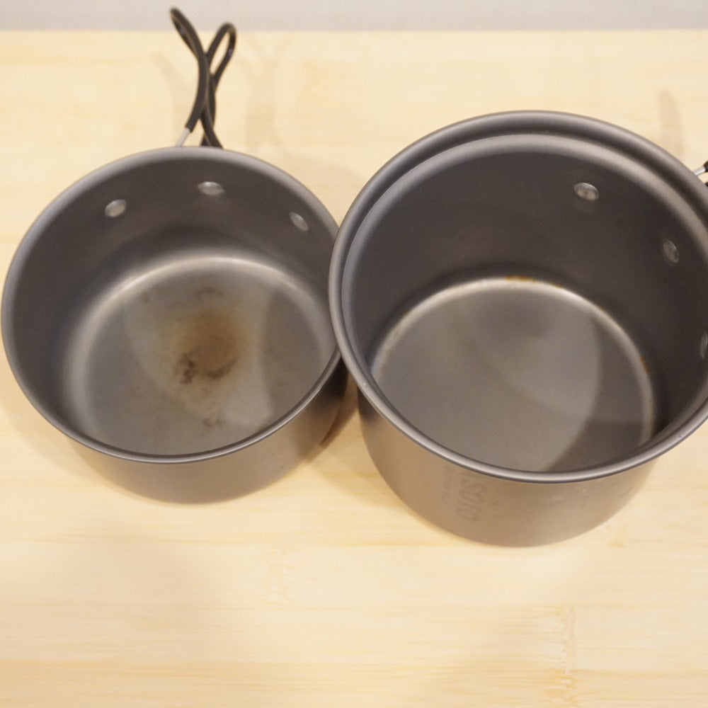 クッカー小の底面に薄い焼け跡など使用感は少しございますが、 クッカー大には目立った汚れなどはございません。 |