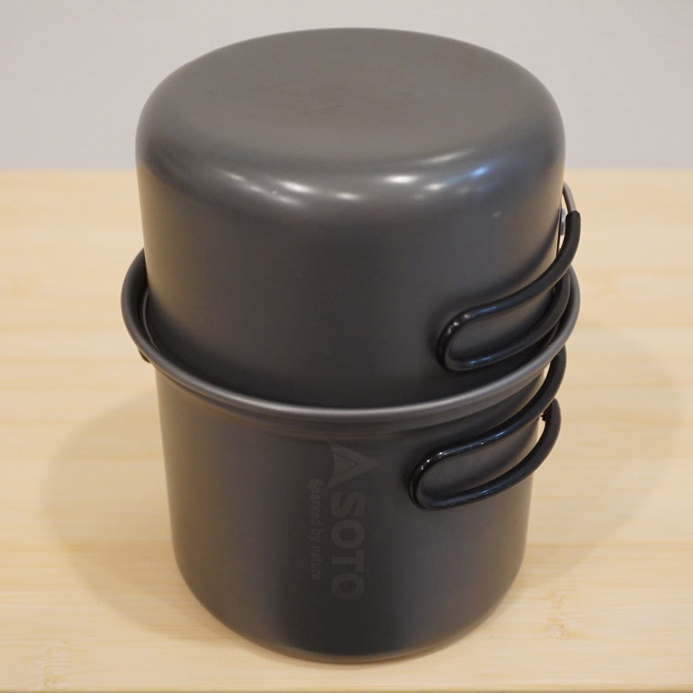 商品説明 | ソト(soto)のアルミクッカーセットM/SOD-510 です。 コンパクトなアルミクッカーセット。 クッカー小(容量:500mℓ)とクッカー大(容量:1,000mℓ)のセットです。 小型のシングルストーブとOD缶(250缶・110缶)がスタッキング可能です。 ※収納ケースは欠品しております。 ●外形寸法 直径130X高さ154mm ●総重量 203g |