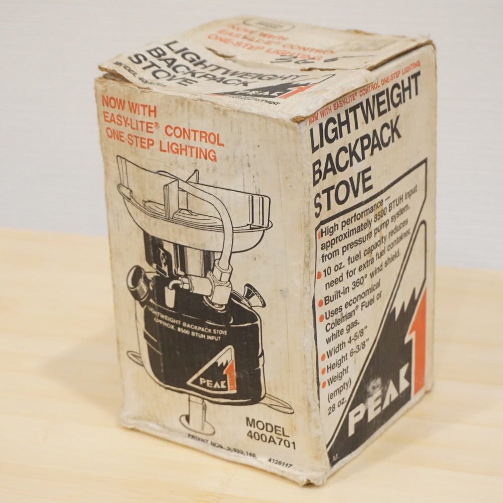 商品説明 | コールマン(Coleman)のガソリンバーナー、 Peak1 400A/ 400A701 です。 1985年2月に製造された、ヴィンテージのシングルバーナーです。 黒レバーで火力が微調整できます。 バースデーバーナーにいかがでしょうか。 ※ヴィンテージアイテムのため、パッキンなどパーツ交換されている場合もございます。 |