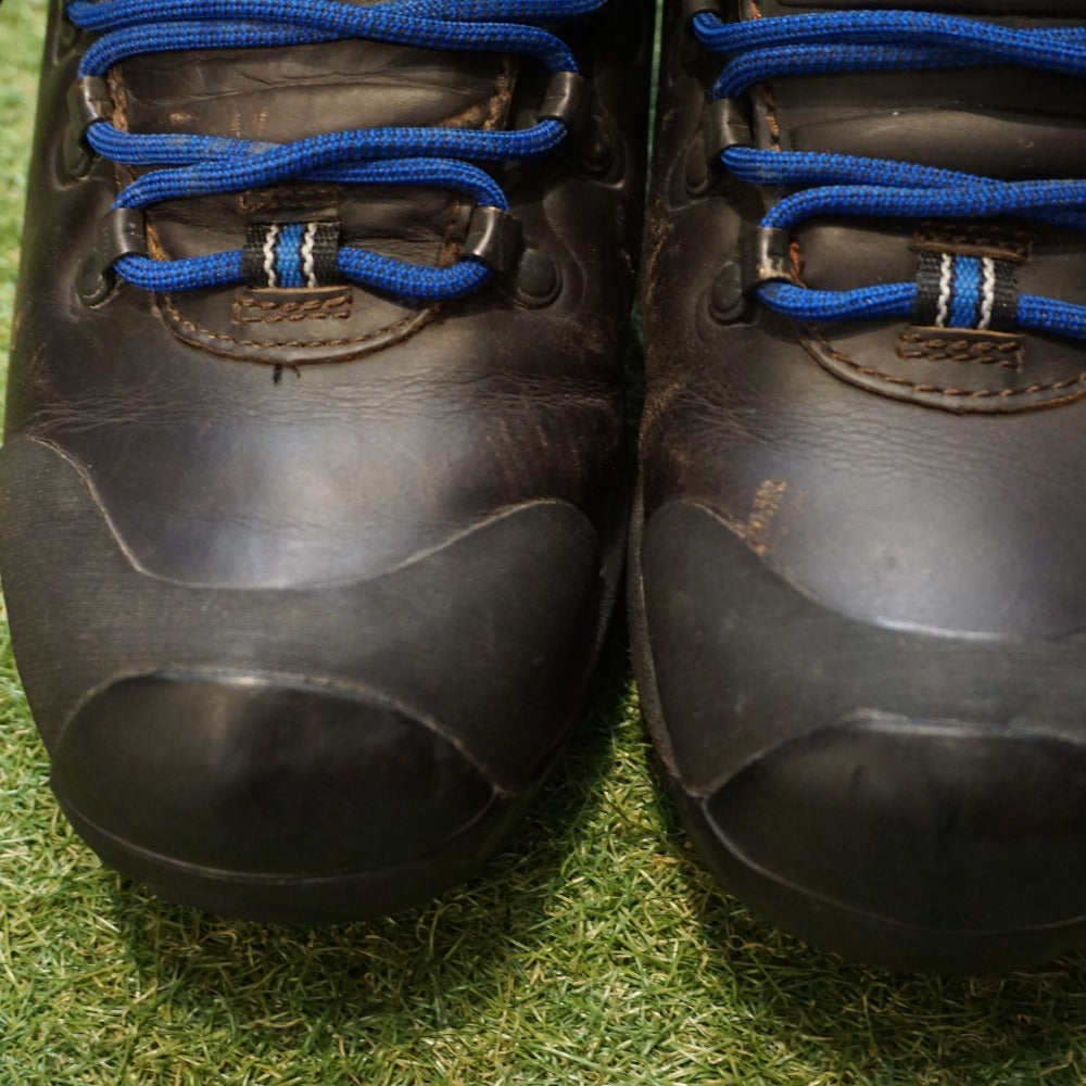 アッパー部分が全体的に細かなスレが目立ち、 靴底にわずかに土汚れなど使用感はございますが、 その他目立った汚れや気になる臭いなどはございません。 |