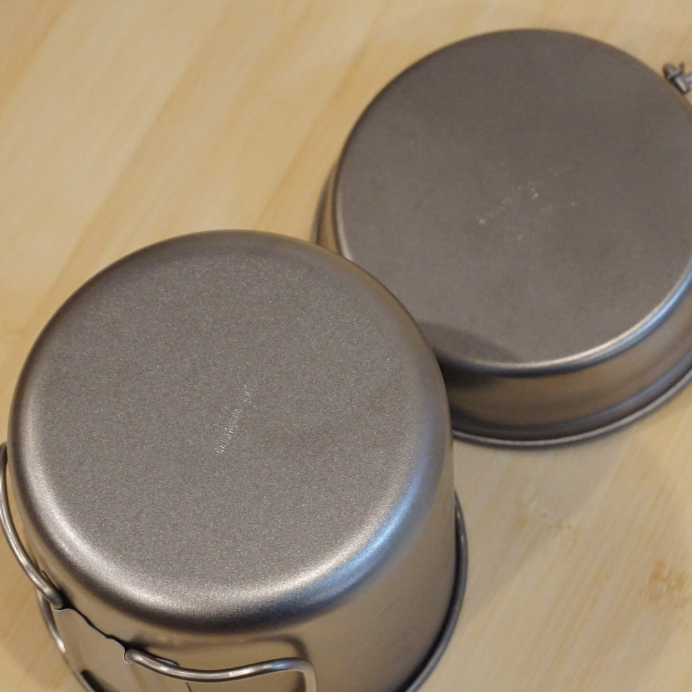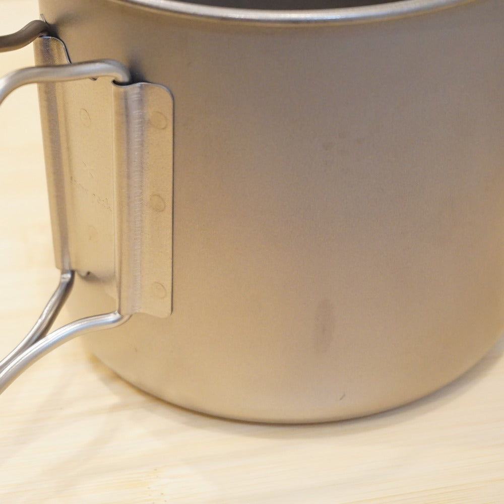 側面に、チタン特有のくすみはわずかにございますが、 その他目立った汚れや焦げ付きなどなく、使用感はほとんどないため、状態は非常に良好です。 |