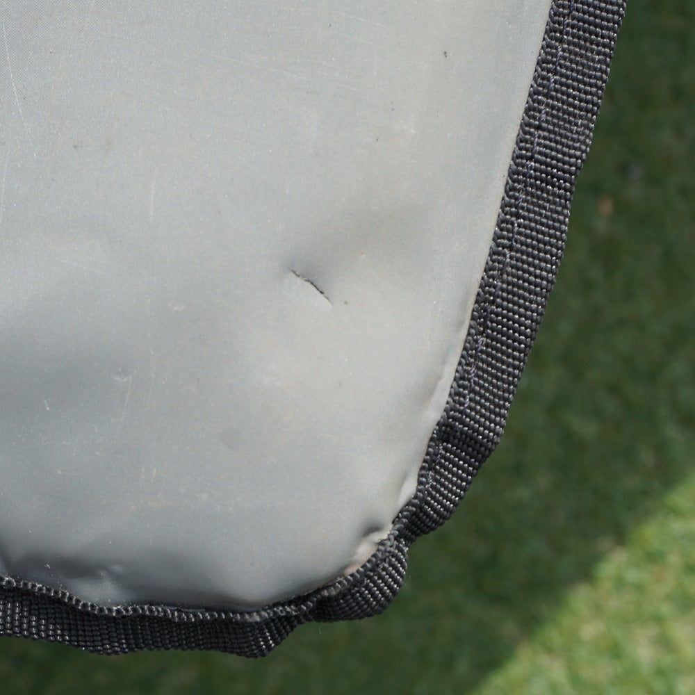外側底面の縁に、擦れや土汚れがあり、 側面に細かなキズがございますが、 内側には目立った汚れなどはござません。 また、内側に1か所、1cmほどの表面の破れはございますが、 表面のみで、外側に貫通する破れではないので、ご安心ください。 |