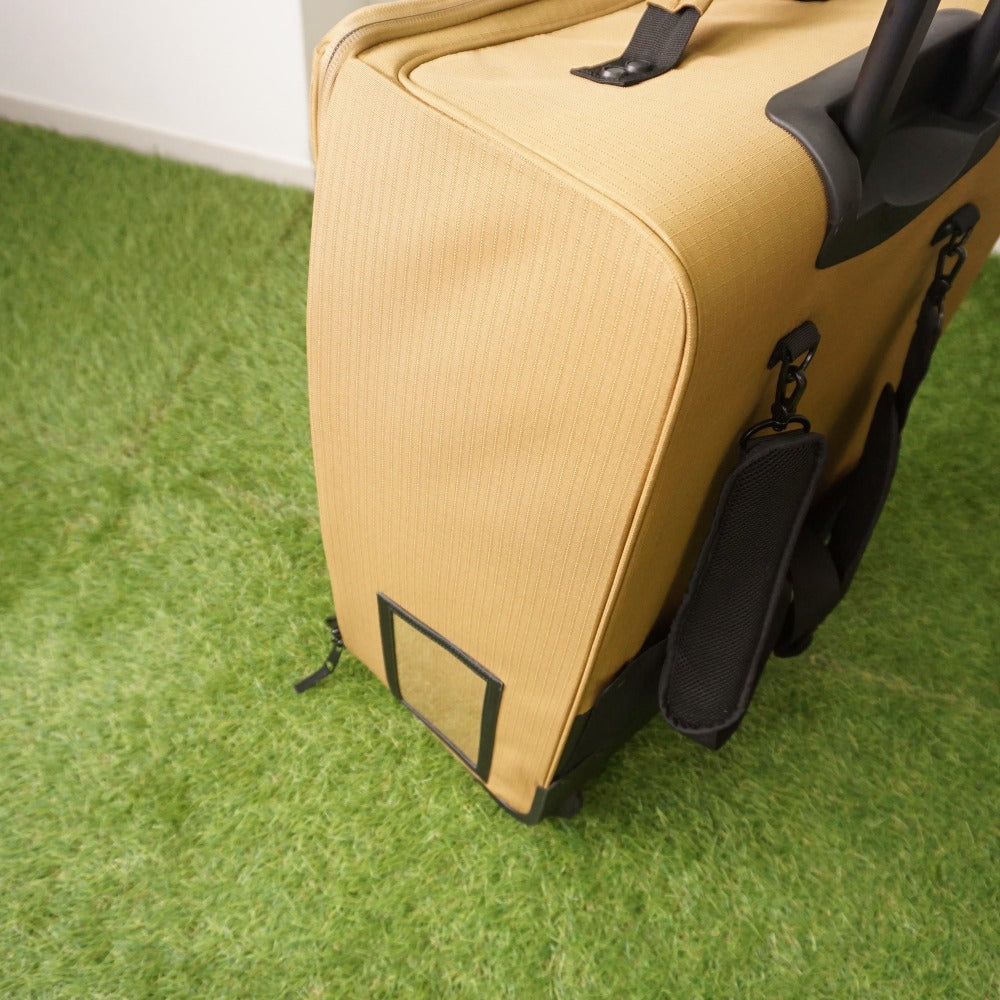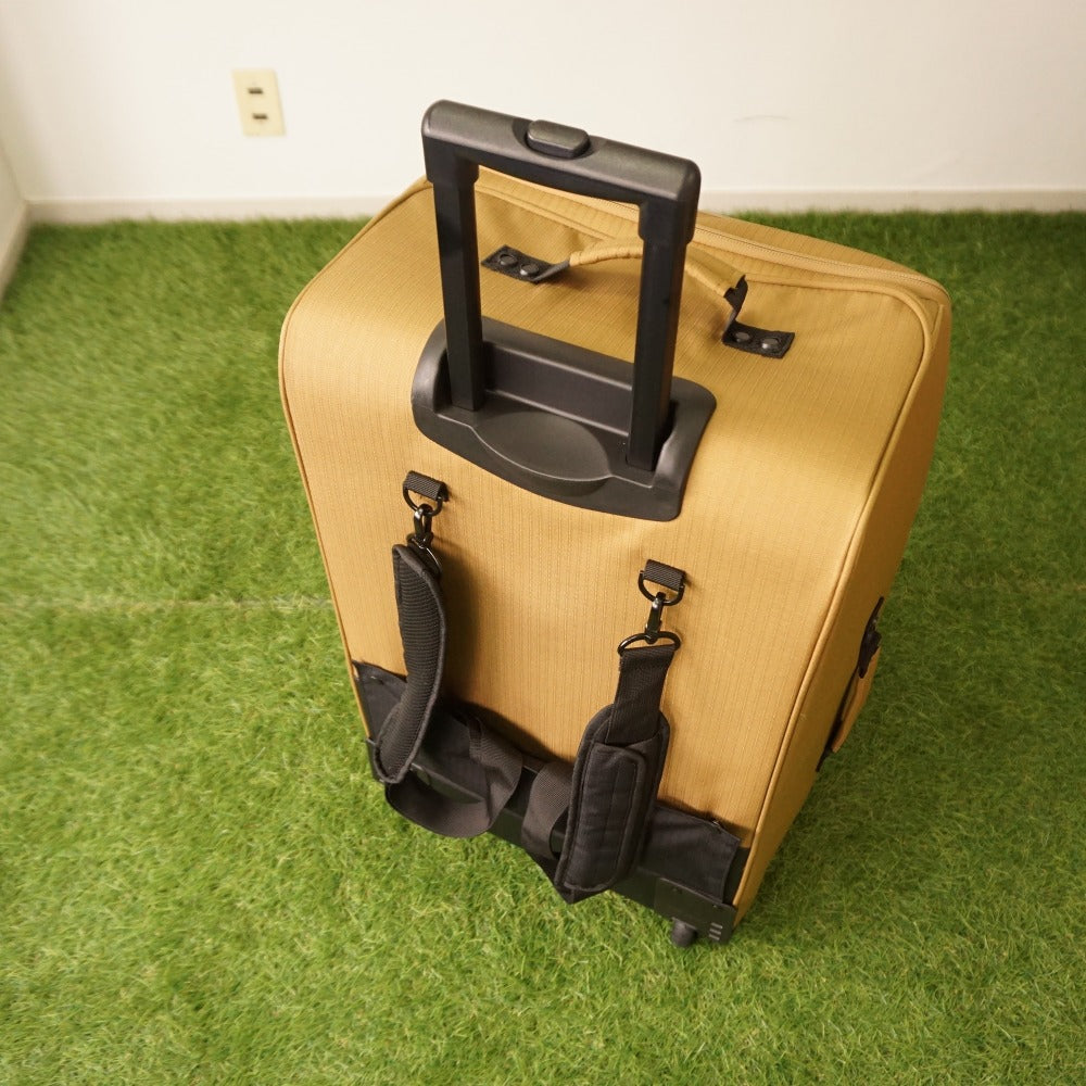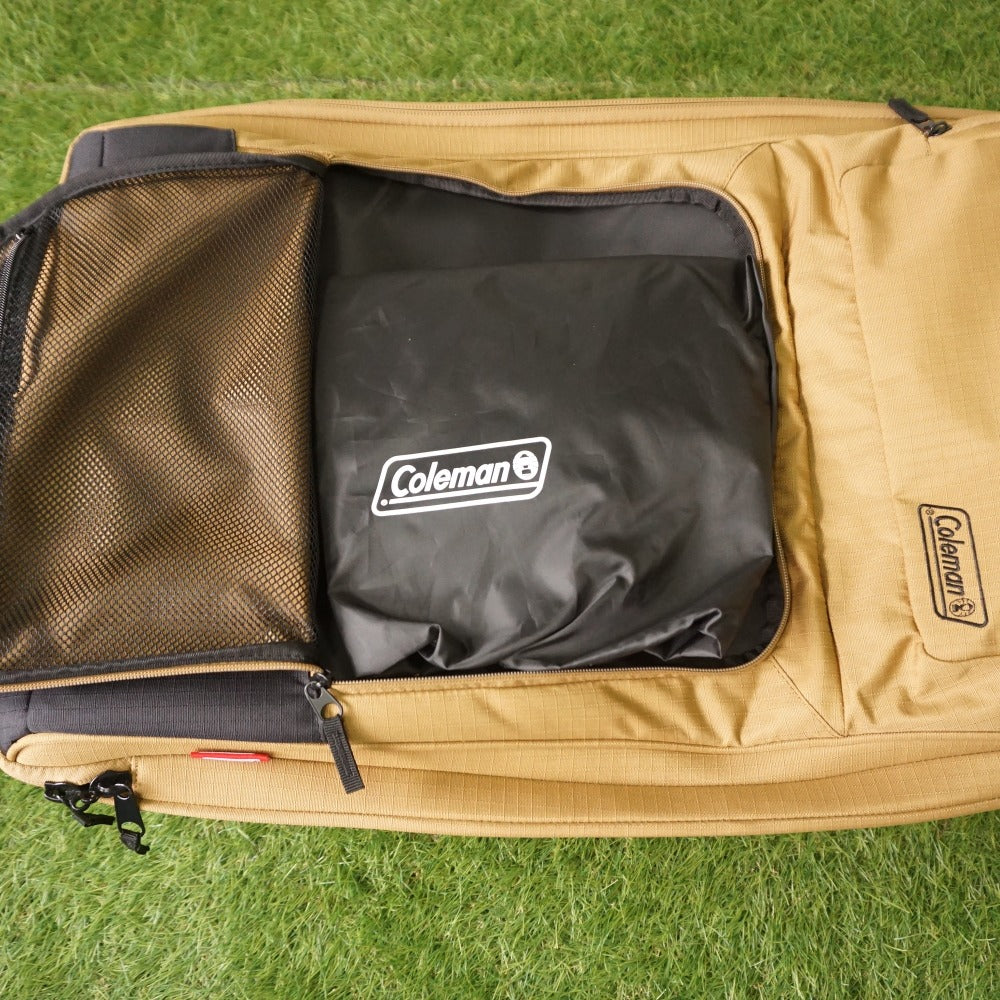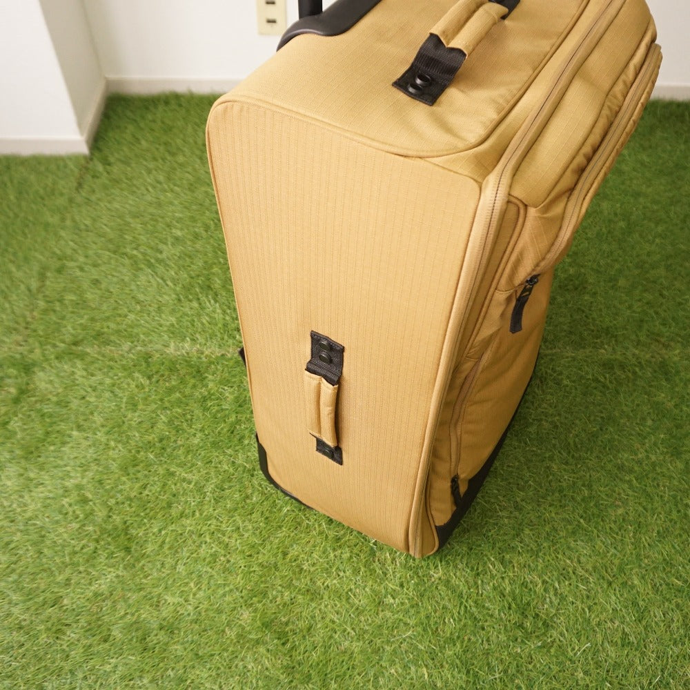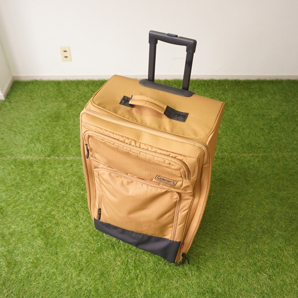 商品説明 | コールマンの大容量ホイールバッグです。 上下2つのフロントポケットで収納力も抜群です。 宅配サービス用の送り状収納スリーブが備えられています。 背負って移動できるショルダーハーネスも装着されています。(取り外し可能) レインカバー付き ●サイズ:約40(W)×70(H)×30(D)cm ●重量:約4.25kg ●素材:ポリエステル ●容量:約85L |