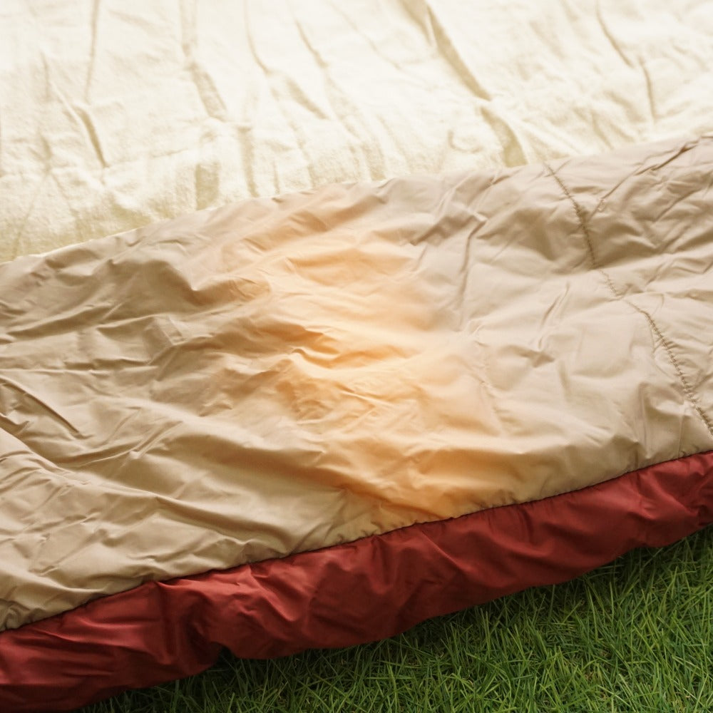 保管時に収納ケースからはみ出ていた折り返し部分に色褪せが見られます。 その他、10回程度の使用で使用感があり、小さな汚れなどがございます。 また、掛布団の内側のネル生地に毛羽立ちがあります。 マット側も小さな汚れがございますが、空気漏れやポンプ部破損はございません。 当店で乾燥はしていますが、クリーニングは行っていませんのでご了承ください。 |
