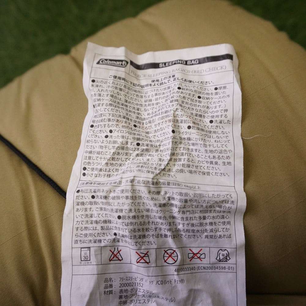 コールマン【Coleman】 フリーススリーピングバッグ/C0 封筒型寝袋 スリーピングギア レッドチェック