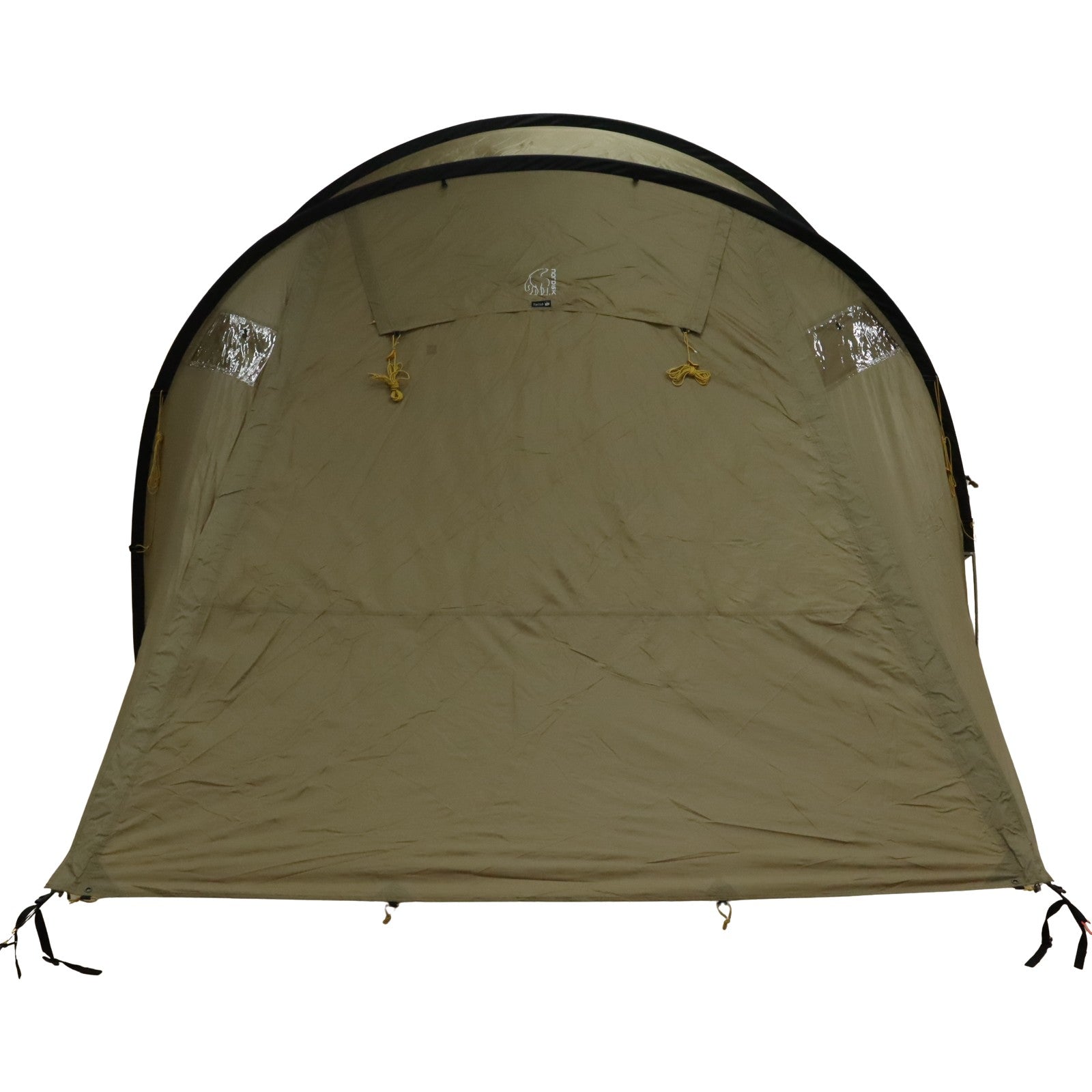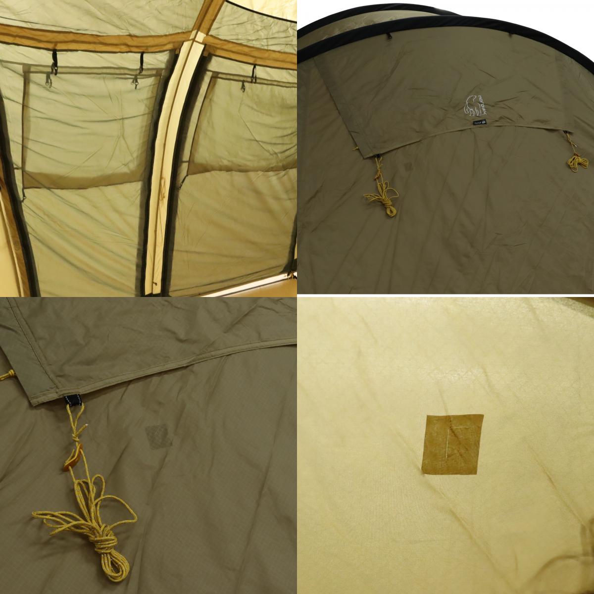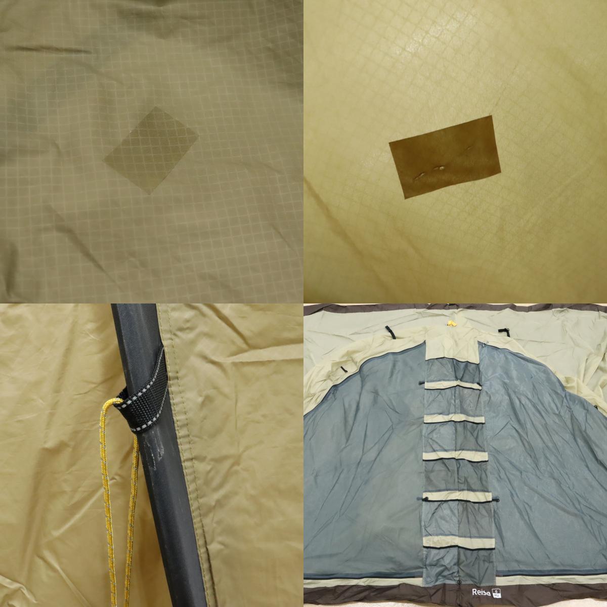 あまり使用感はございません。 補修跡:2~4ヶ所所、2~4ヶ所所 本体の前側ドアパネルに一カ所、後部天井付近に一カ所の補修跡がございます。 本体のスリーブにスレがございます。 アルミペグが1本不足しております。 収納ケースに1センチ程度の破れがございます。 設営確認済です。 |