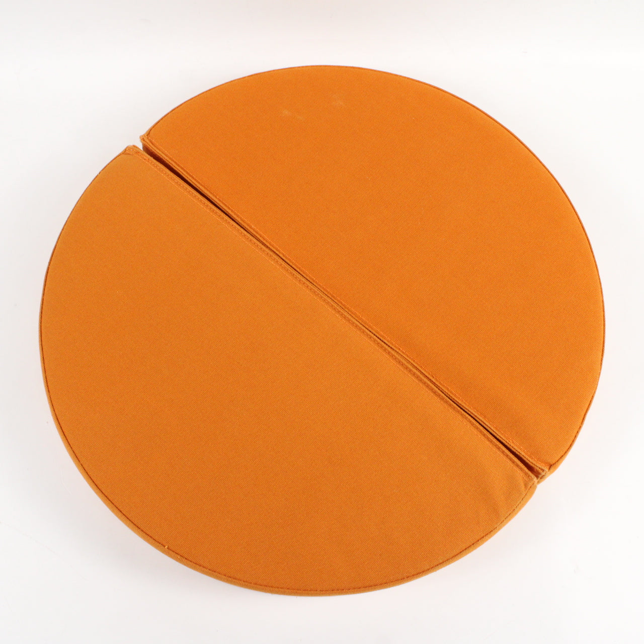 厚手で固めの座面を真ん中で折れば、食事にも枕にもちょうどいい高さになります。