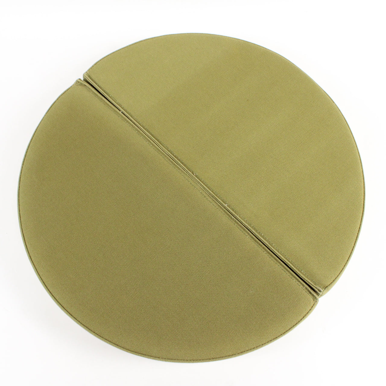 厚手で固めの座面を真ん中で折れば、食事にも枕にもちょうどいい高さになります。
