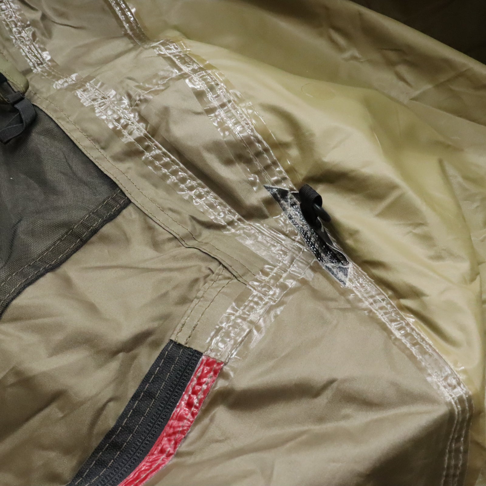 仕様 材質:本体/150Dポリエステルオックス・遮光ピグメントPUコーティング耐水圧3,000mmミニマム(ルーフ部)・UVカット加工・テフロン撥水加工・150Dポリエステルオックス・PUコーティング耐水圧1,800mmミニマム(ウォール部)・UVカット加工・テフロン撥水加工・フレーム/A6061(φ19mm)、インナールーム/68Dポリエステルタフタ(ウォール)・210Dポリエステルオックス・PUコーティング耐水圧1,800mmミニマム(ボトム)