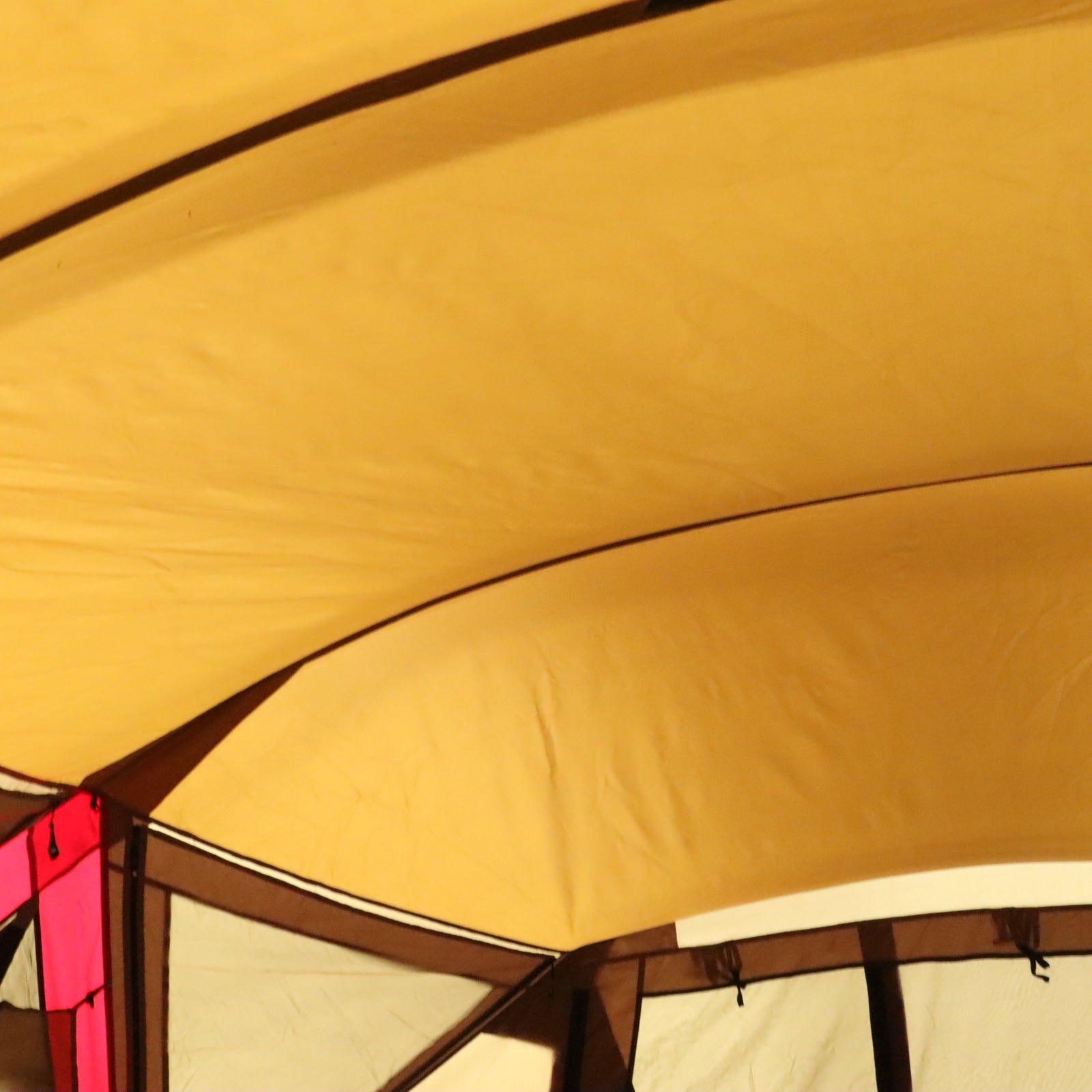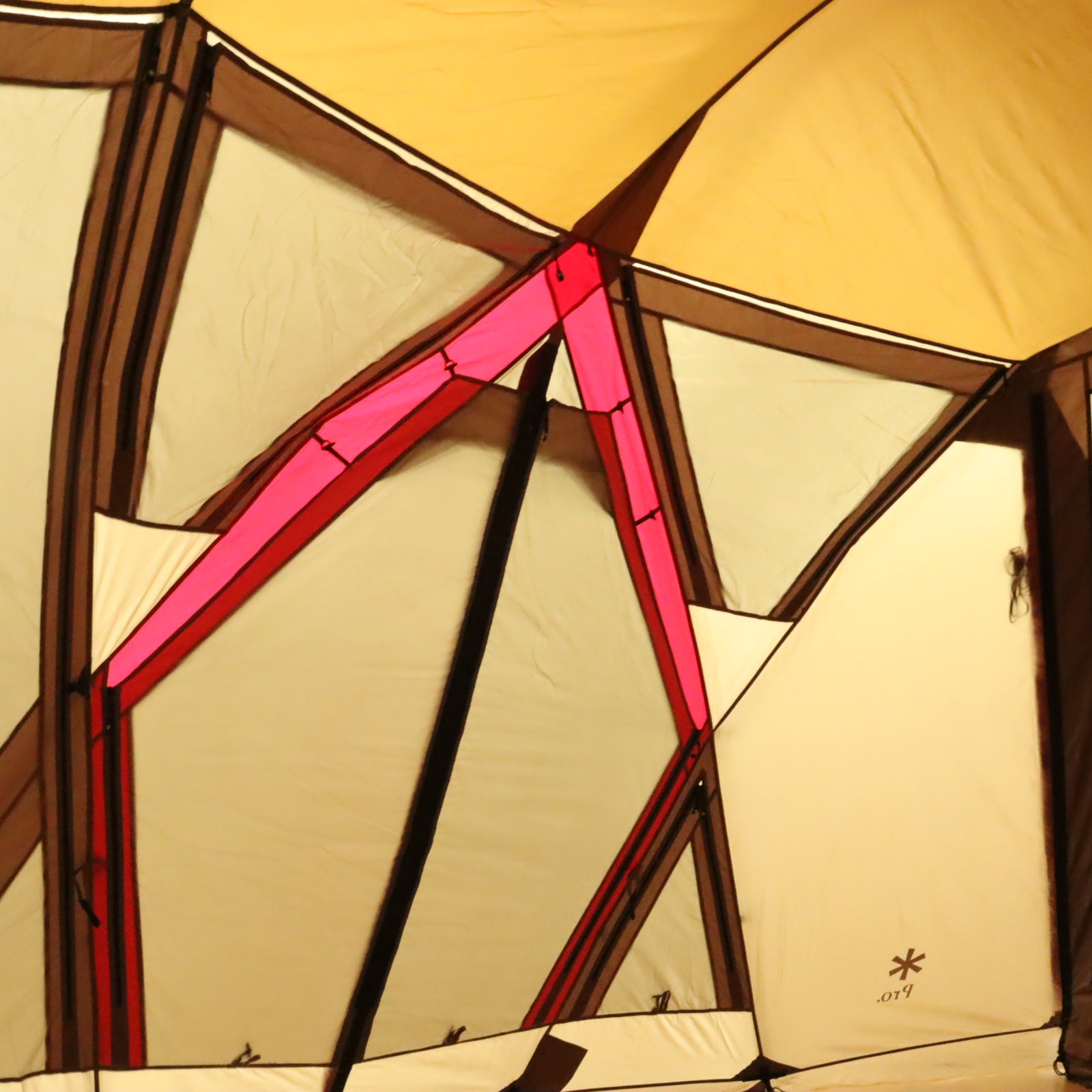 仕様 | 材質: 本体/150Dポリエステルオックス ルーフ部/遮光ピグメントPUコーティング耐水圧3,000mmミニマム ウォール部/耐水圧1,800mmミニマム・テフロン撥水加工・UVカット加工 フレーム/A6061(φ16mm・19mm) |