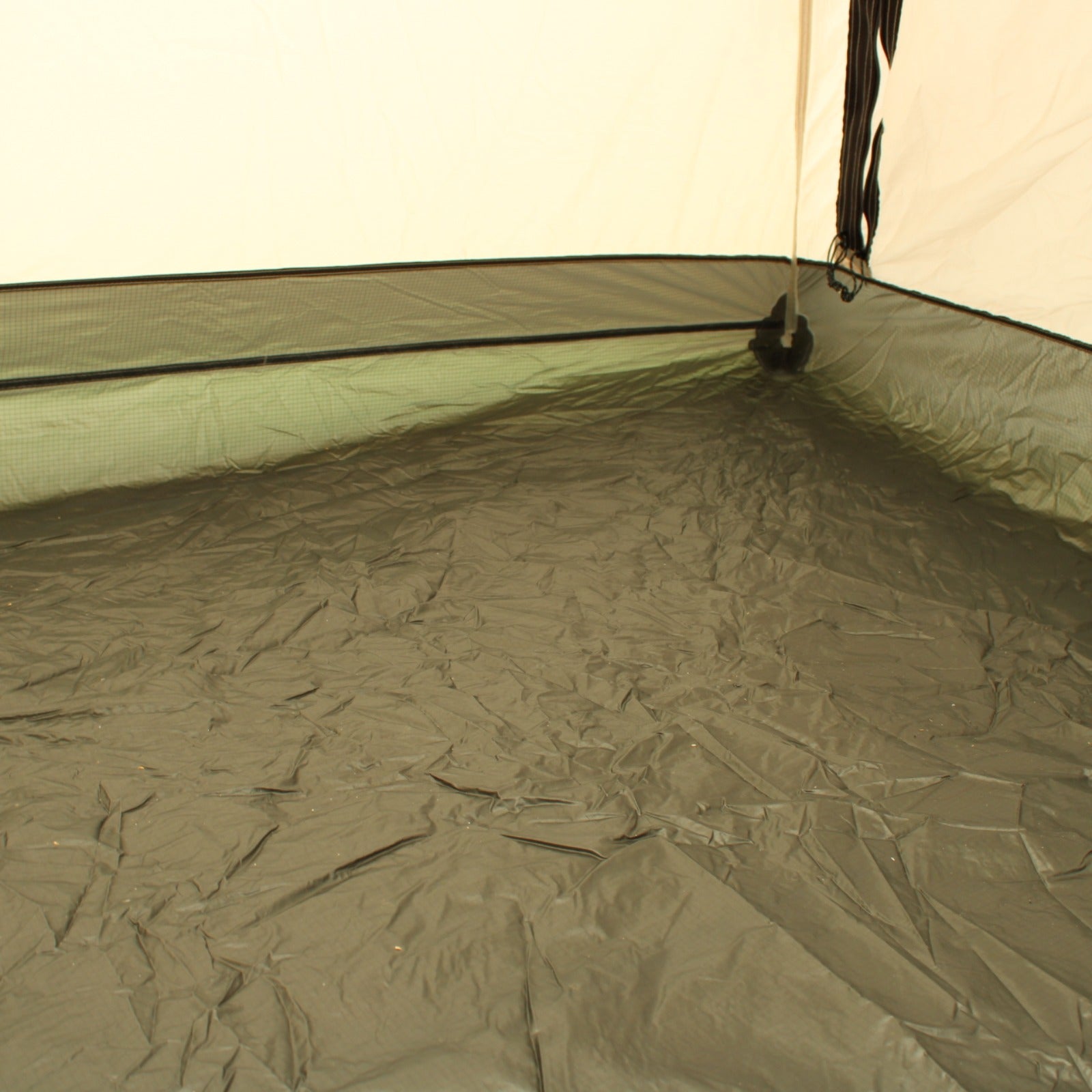雨の日も成人男性が濡れずに靴の脱ぎ履きができるほどの広い前室を備えた快適性と、左右にメッシュの窓を設けることで得た高い通気性を備えたテントになります。