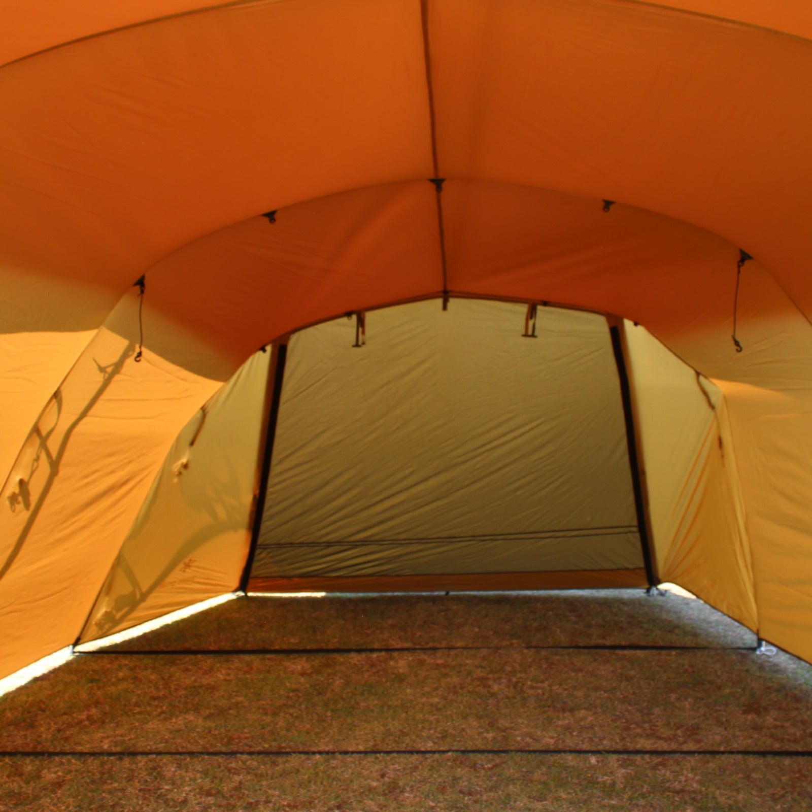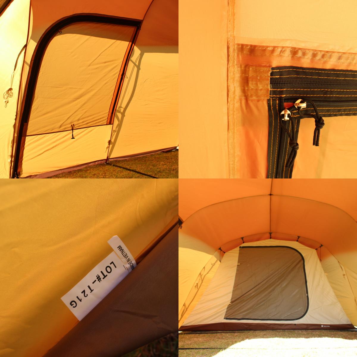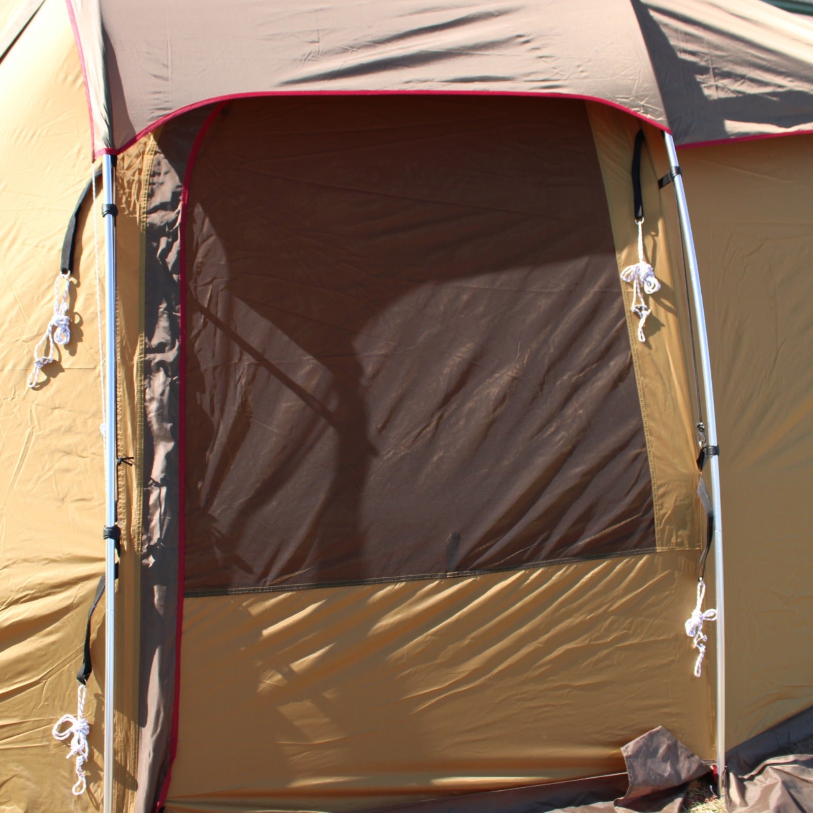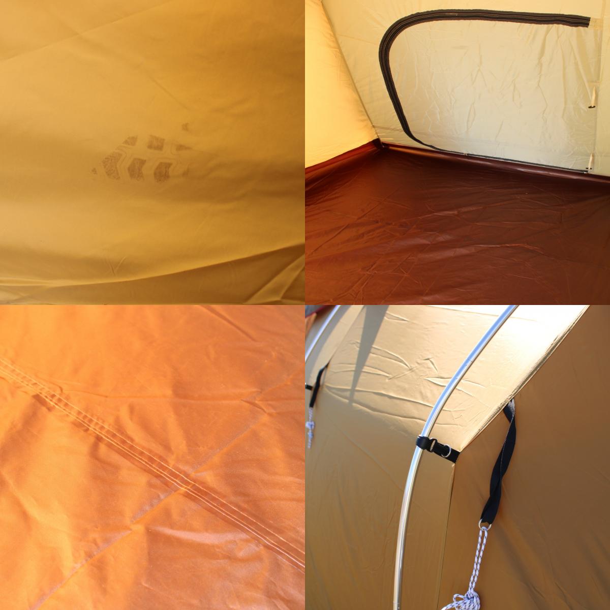 | 仕様 | 材質:本体/75Dポリエステルタフタ・PUコーティング耐水圧1,800mmミニマム・UVカット加工・テフロン撥水加工、 ルーフシート/75Dポリエステルタフタ・PUコーティング耐水圧1,800mmミニマム・UVカット加工・撥水加工、 マッドスカート/210Dポリエステルオックス・PUコーティング、 インナーウォール/68Dポリエステルタフタ、 ボトム/210Dポリエステルオックス・PUコーティング耐水圧1,800mmミニマム、 フレーム/A6061(φ16mm+φ14.5mm) |