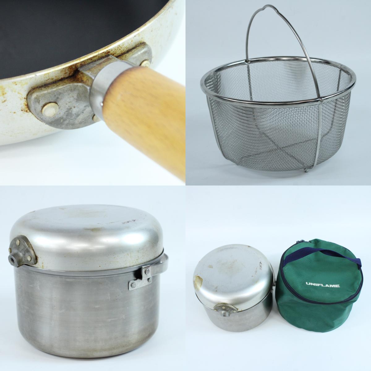 セット内容 | fanライスクッカーDX:(本体)アルミニウム・フッ素加工、(フタ)アルミニウム フライパン:アルミニウム(板厚約2mm)・フッ素加工 ステンレス大鍋:ステンレス鋼 ステンレス片手鍋:ステンレス鋼 メッシュバスケット:ステンレス鋼 |