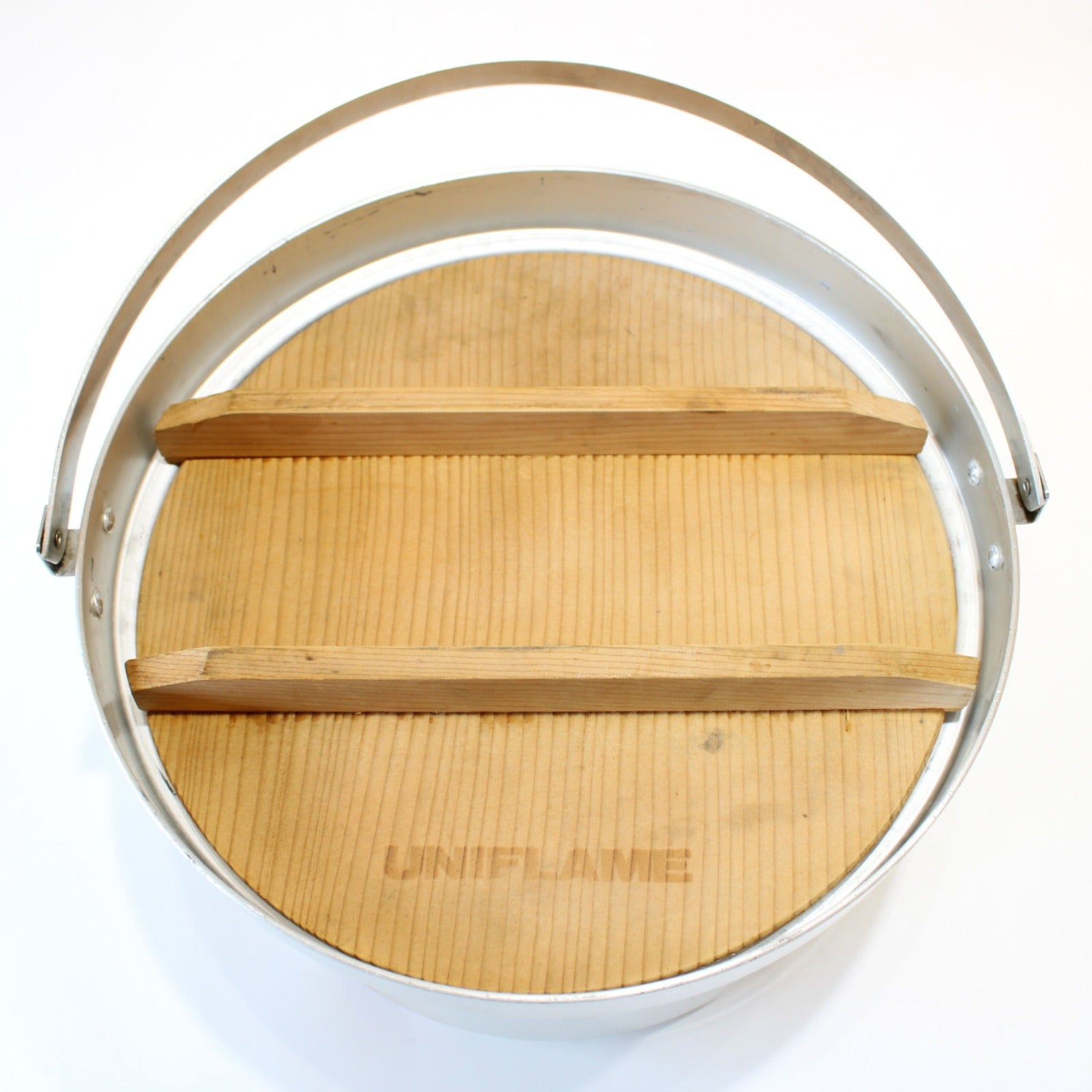 仕様 | 大鍋:アルミニウムアルマイト加工(板厚2mm) 満水容量8.6L 両手鍋:アルミニウムスミフロン加工(板厚2mm) 満水容量3.3L メッシュバスケット:ステンレススチール 木蓋:天然木 キャリングケース:ナイロン |