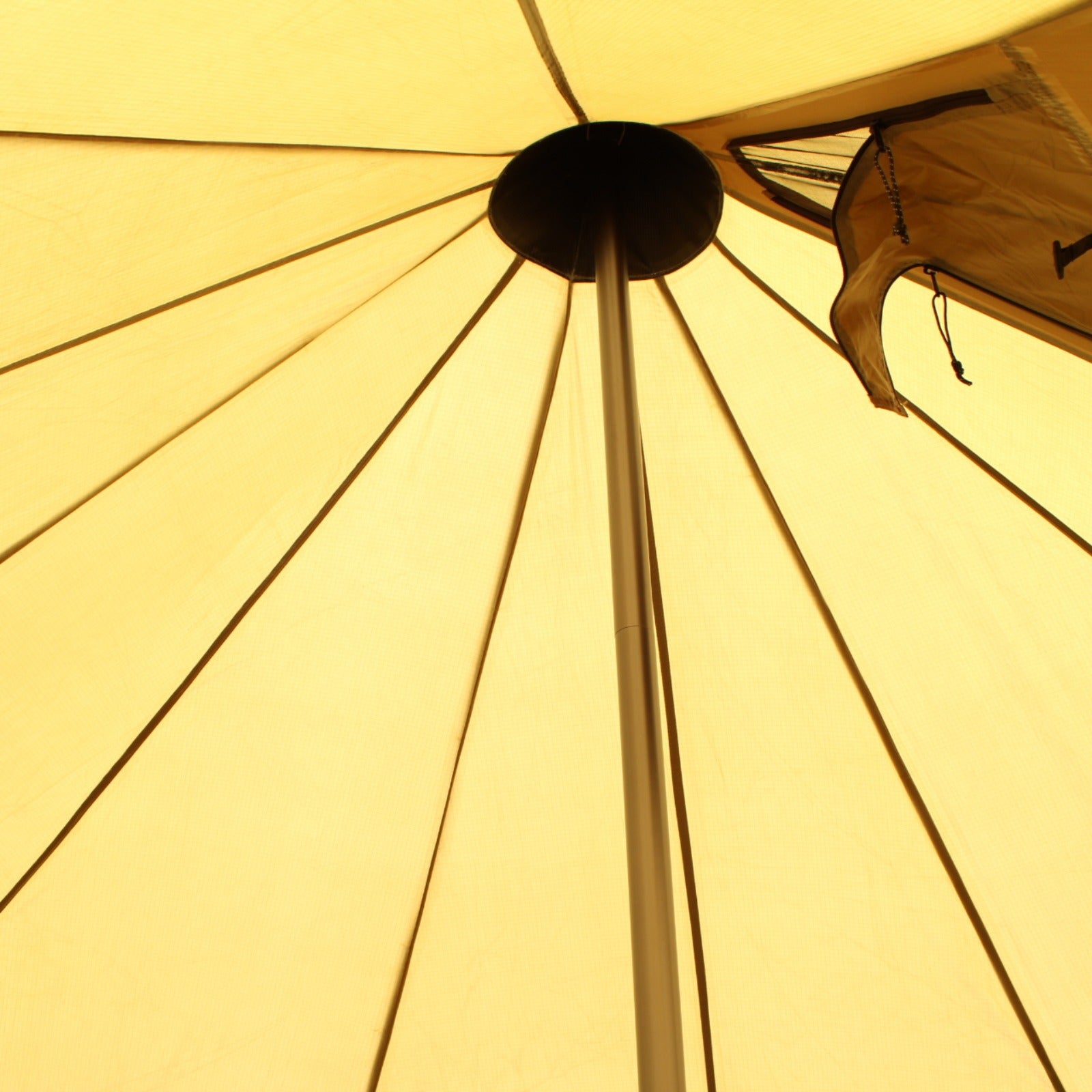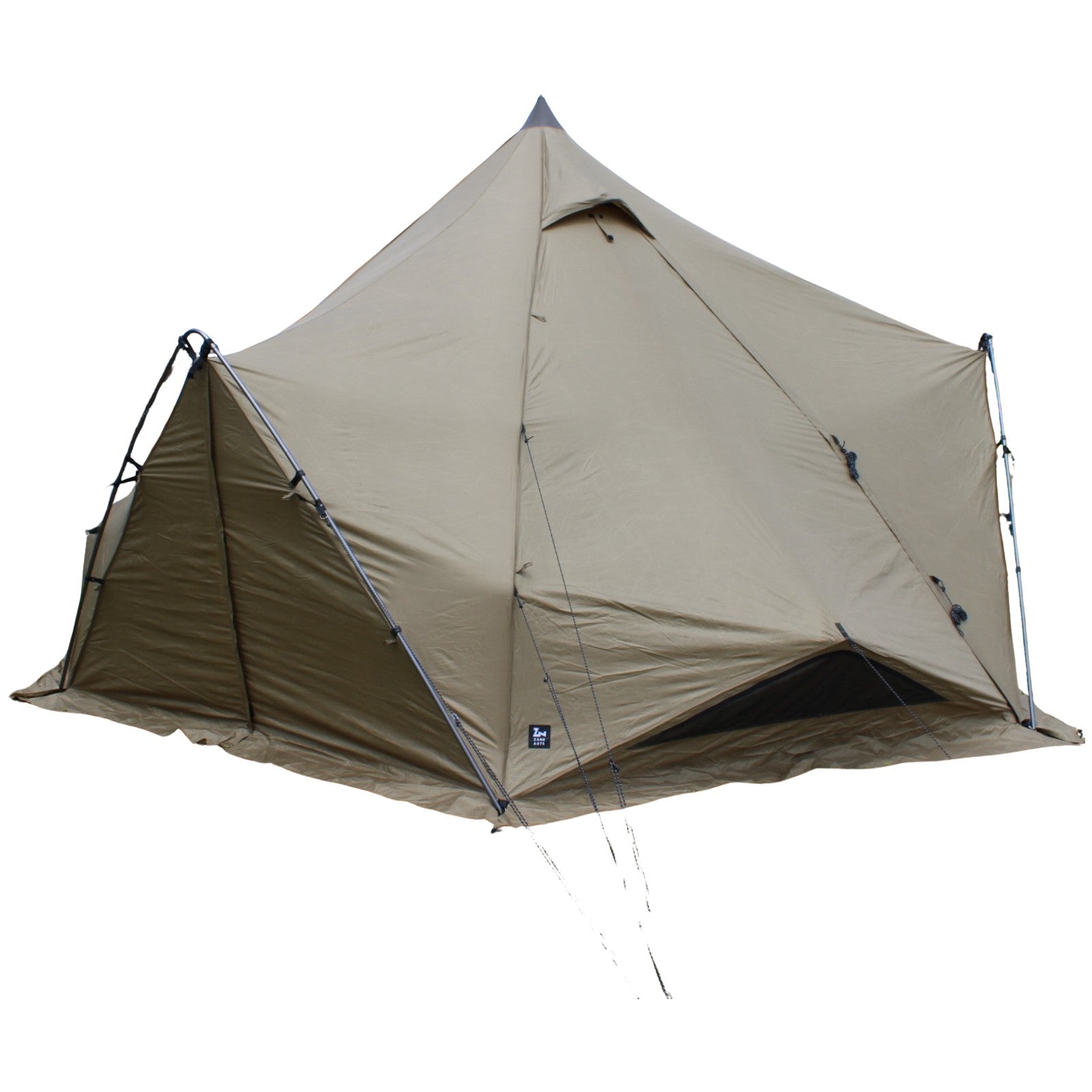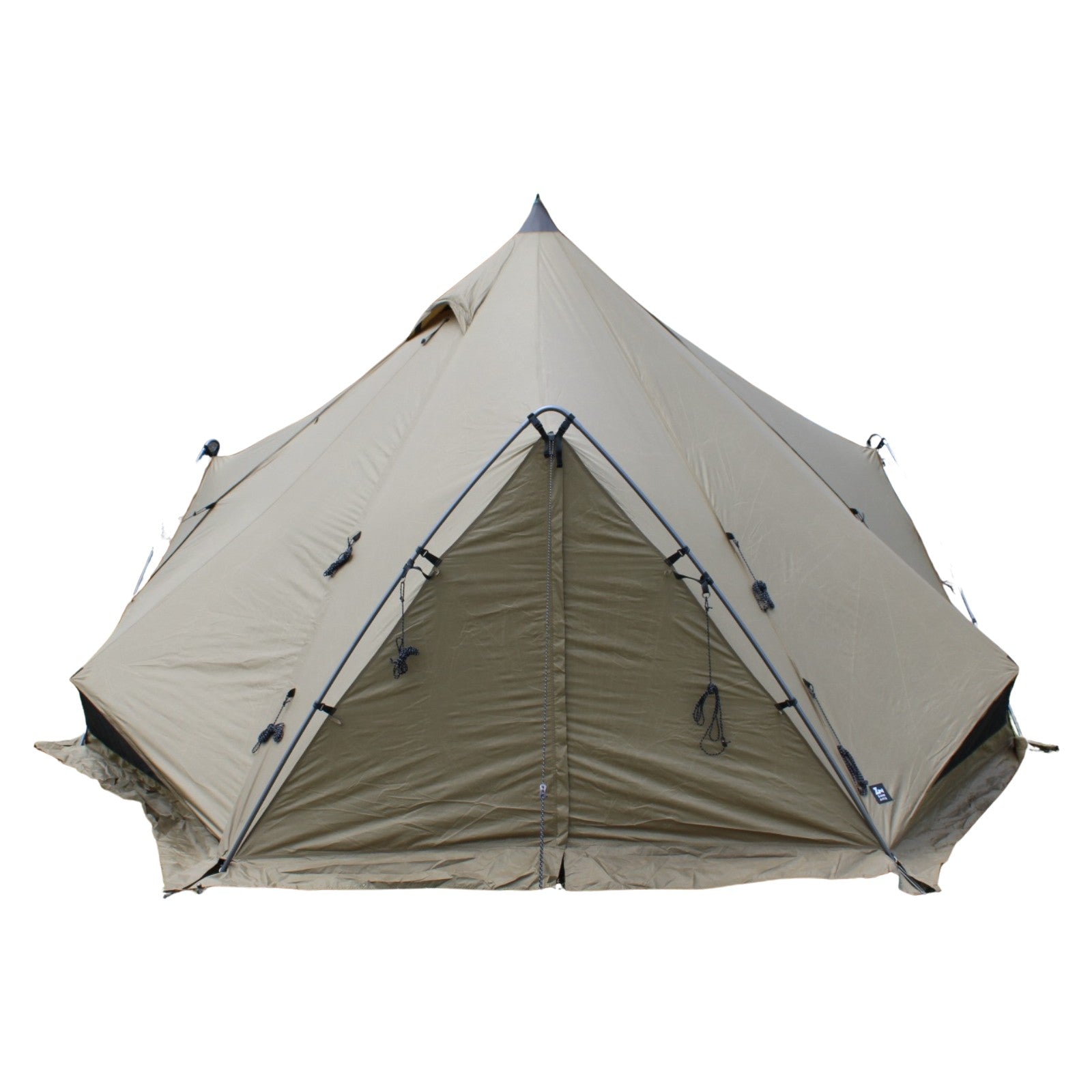 エクステンションフレームで生まれる広い空間と、大胆に開口するパネルで、ワンポールのデメリットを解決したミドルサイズシェルター。