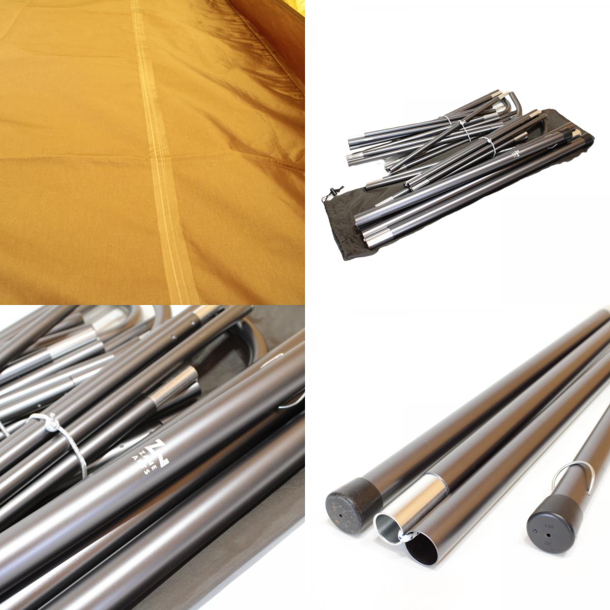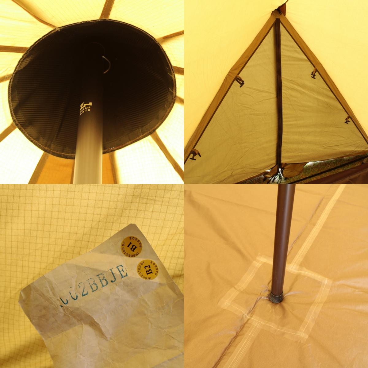 あまり使用感はございません。 ロープケースが付属しておりません。 センターポール、エクステンションフレームに使用による軽度のスレがございます。 本体に使用による薄い汚れ、スカート部分に2ミリ程度の穴がございます。 設営確認済です。 |